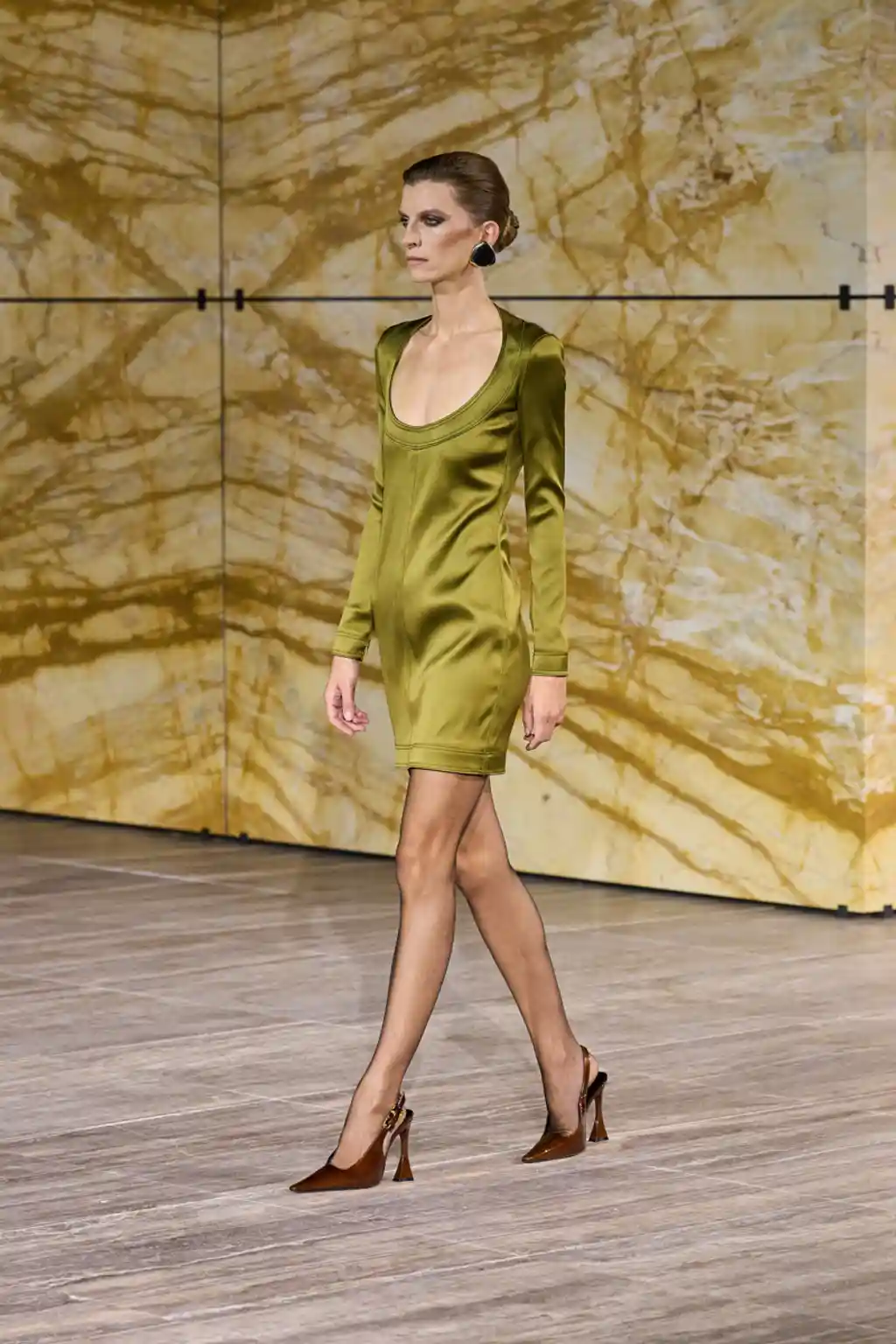 The looks in Lanvin’s latest offering is a real celebration of the house’s roots, but by no means nostalgic. Drop-hemmed dresses edged with tulle and lattice instead of the traditional tassels, classic leather extended up to the elbows and sharp tailoring with ultra modern details feel wonderfully sensual. We might be living an entire century later than the actual roaring ‘20s, but Lanvin’s iteration is just as chic.