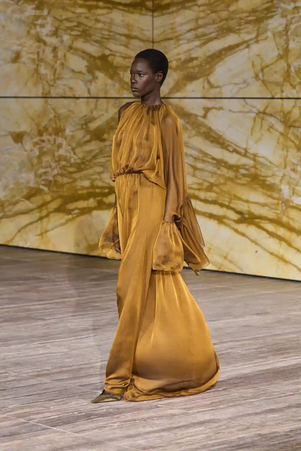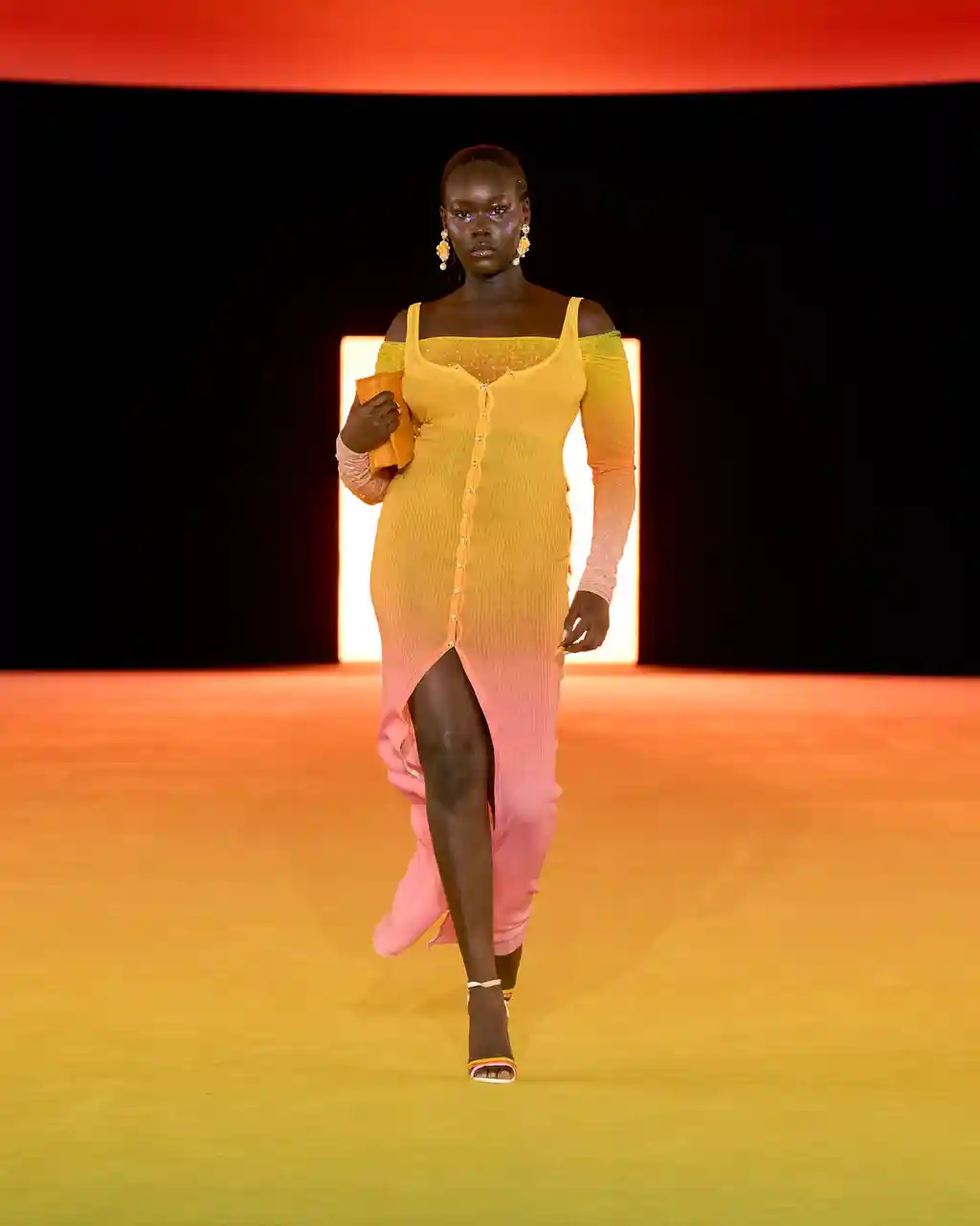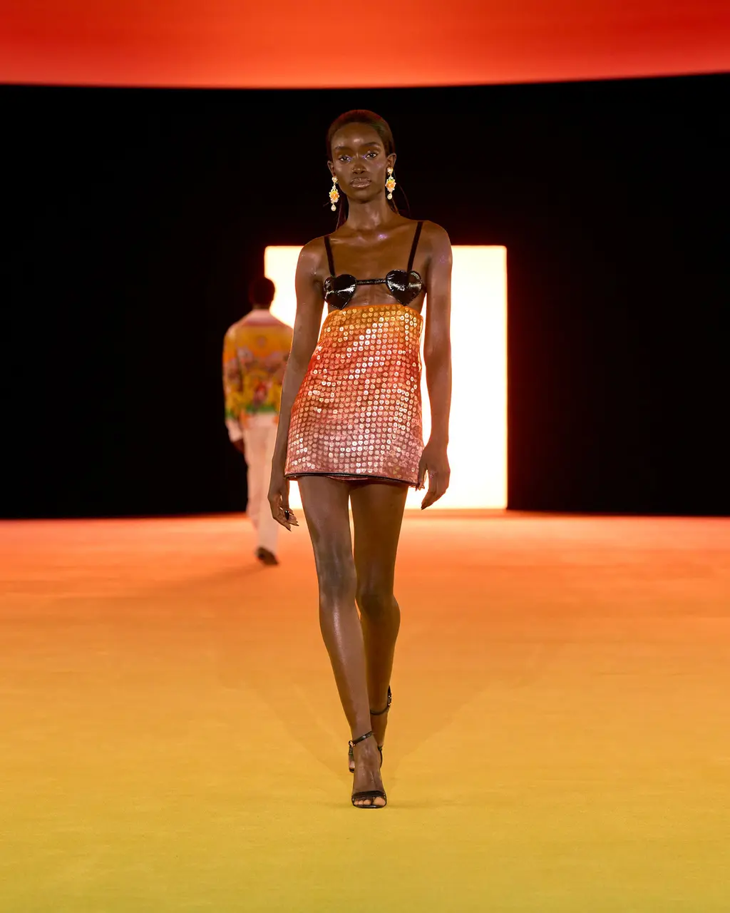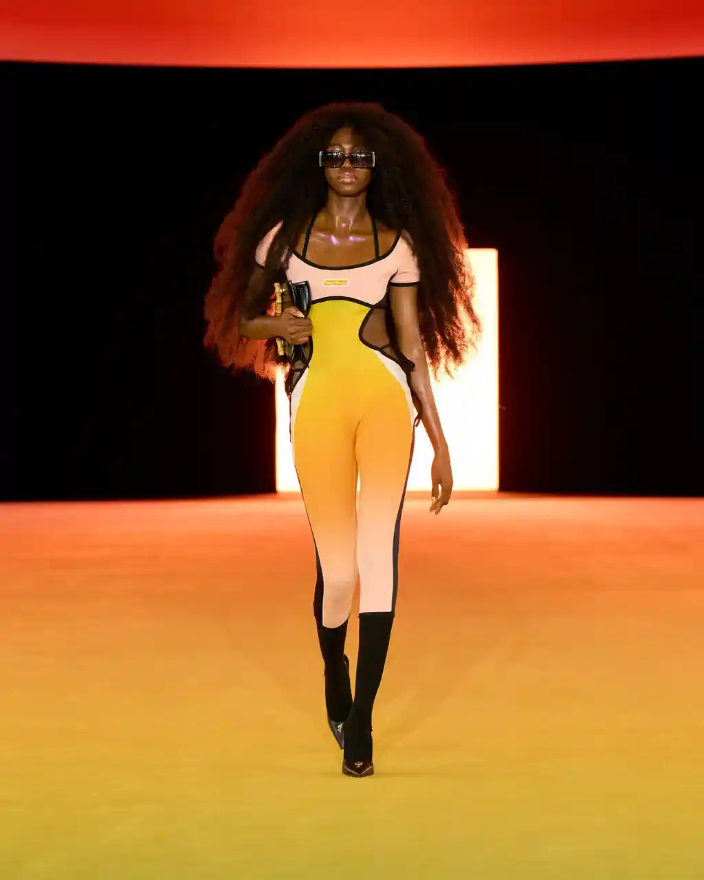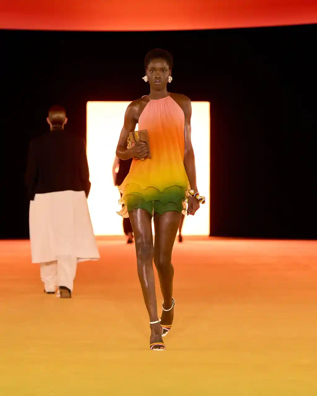 Casablanca’s debut appearance on the womenswear schedule. The sunset-hued collection, titled Day of Victory, was shown on the 63rd anniversary of Nigeria’s independence from Britain.