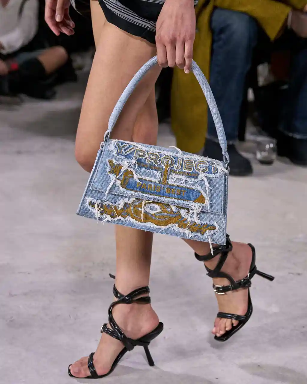 No creative director? No problem. For Lanvin’s design team, it was a starry-eyed trip back in time for the house’s SS24 collection. The team dug through their advertising archives to find inspiration from legendary fashion snapper Guy Bourdain’s signature surrealist angles and high contrast colours. As for the silhouettes, inspiration came from the 1920s and ’30s, when Lanvin cemented the house’s signature codes: ultra clean lines contrasted with intricate hand embroidery, plus the careful clash of femininity and masculinity that Lanvin became famous for.