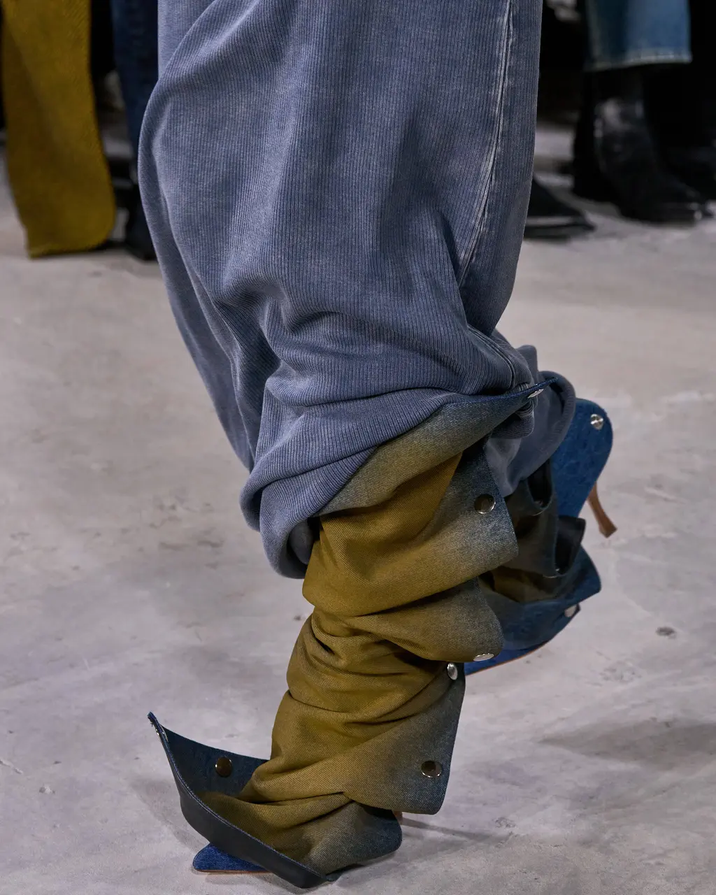 Does the divisive low-rise pants trend make you viscerally recoil? If it does, then boy, do we have some good news for you: the pendulum might be about to swing the other way. That’s if Jonathan Anderson has a say in it, anyway. The Northern Irish designer is the master of a weird and wacky silhouette – just look at his recent JW Anderson show where hunched over hoodies were literally made out of plasticine. This season at Loewe, Anderson yanked trousers up to dizzying new heights, with tit-grazing waistlines that reached halfway up the ribcage. He first introduced this silhouette at the Loewe men’s show in June, but the women’s pants were pulled up even higher. So, if you’re looking for a trick to make your legs appear longer, then voilà!