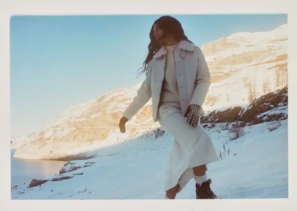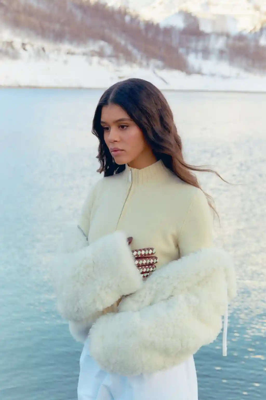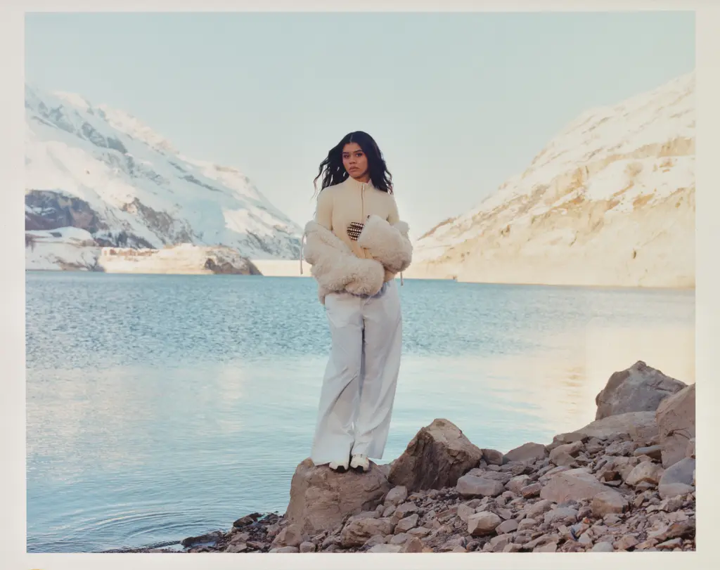 The snowy landscape is a fitting backdrop; Salomon, of course, was born in the city of Annecy, right in the heart of the Alps. But it’s also a properly cold team-up, as Ama shares the brand’s sense of adventure and love of fashion. A regular on the front row for the likes of Loewe and Acne, Ama Lou is an avid vintage collector and designs her own pieces for her cinematic music videos.