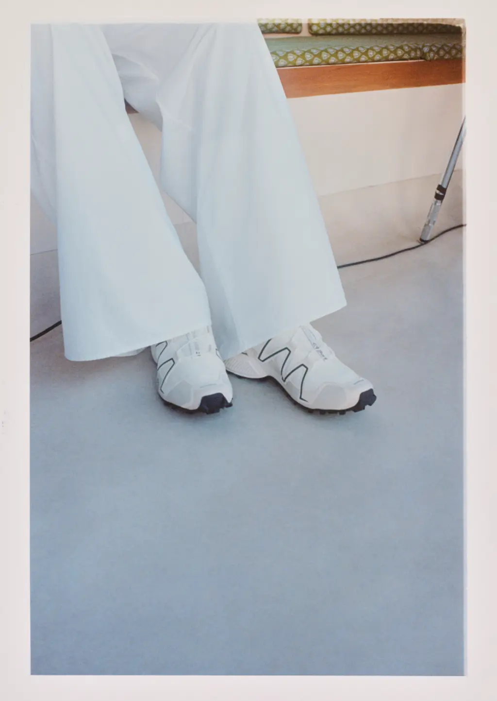She’s also seen sporting the Speedcross 3 shoe, a revived version of a heritage style designed for trail running and mountain racing. Vanilla only in colourway, it features an edgy silhouette emblazoned with zig-zag detailing, making it just as at home on warehouse rave floors as it is on ambling rambles. Plus its oversized, ground-hugging lug means the aforementioned stacking isn’t going to happen.