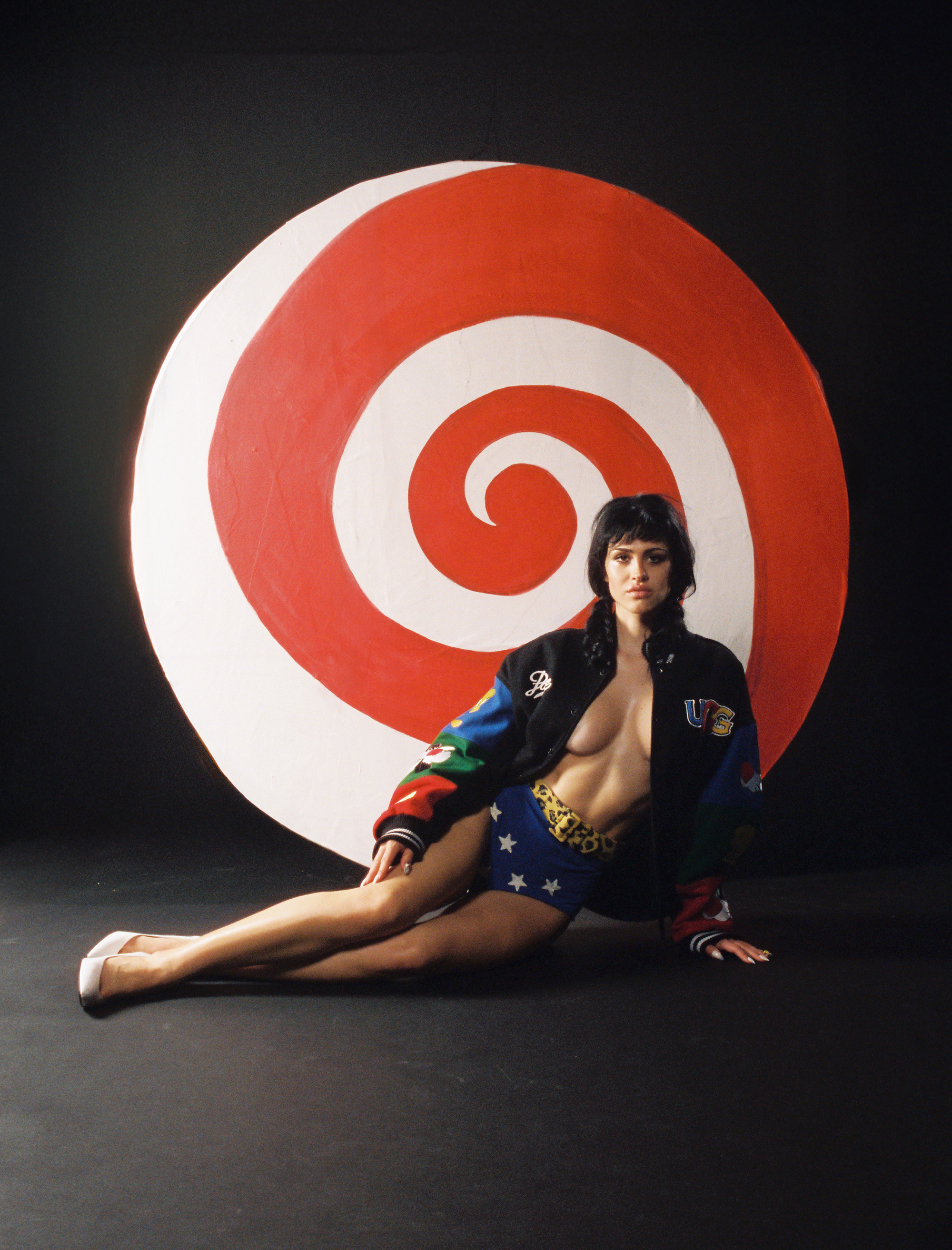 Amelia wears jacket UGG PALACE, briefs courtesy of Strange Desires and belt courtesy of Rellik