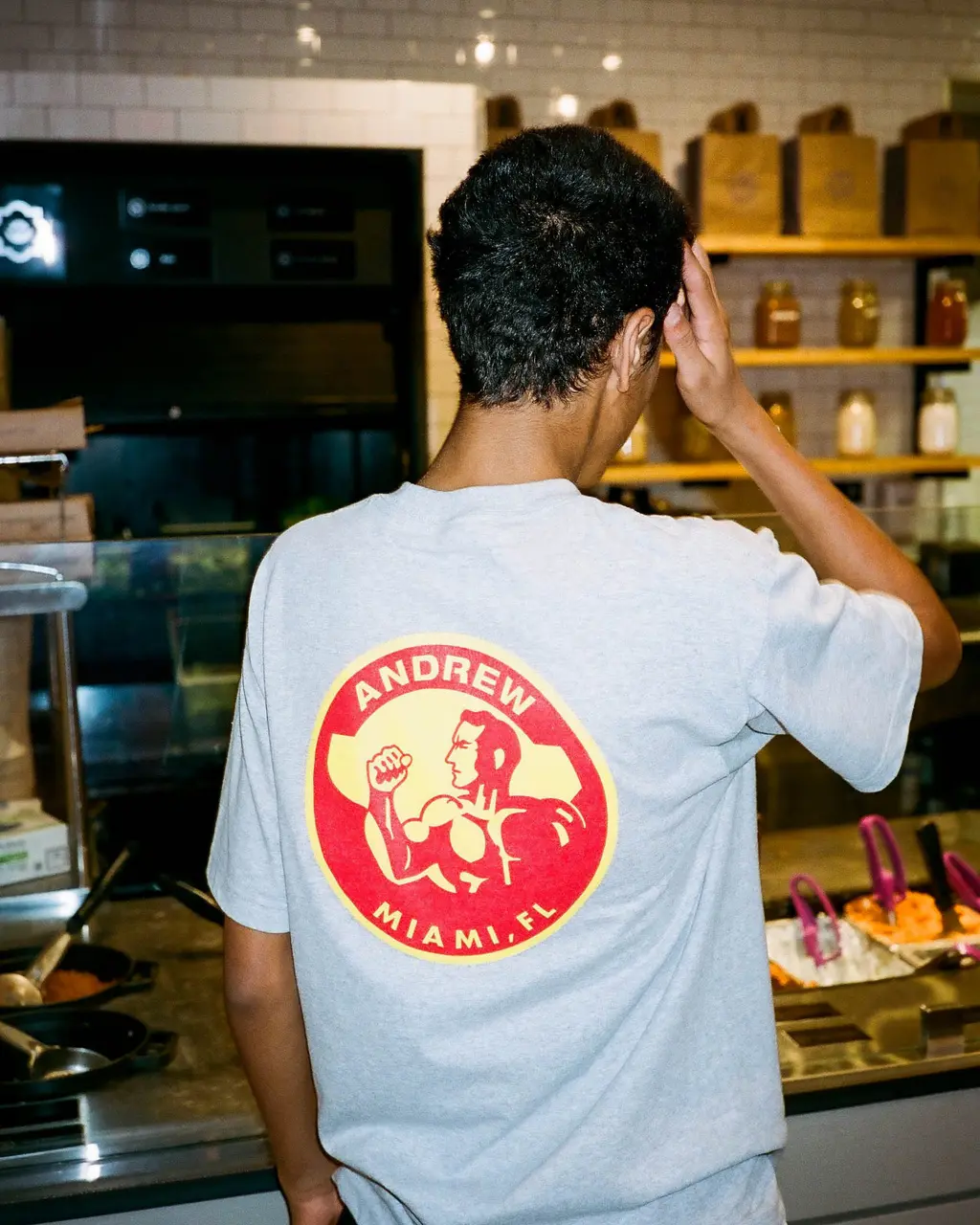Andrew’s most recent collaboration is one that’s close to Pres and Adrian’s hearts as Cuban-Americans. Last month they teamed up with local Cuban restaurant Versailles: a Miami treasure that’s been serving medianoches and sweet plantain to the people of Downtown since 1971. The collection includes Cuban sandwich T‑shirts, a coffee cup, skate decks and a blue and white striped baseball jersey. As Adrian explains, Andrew is more than just a shop – it’s an evolving project through with the guys can enhance the community in which they thrive.