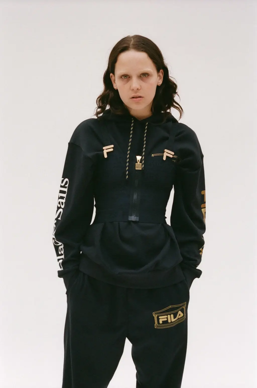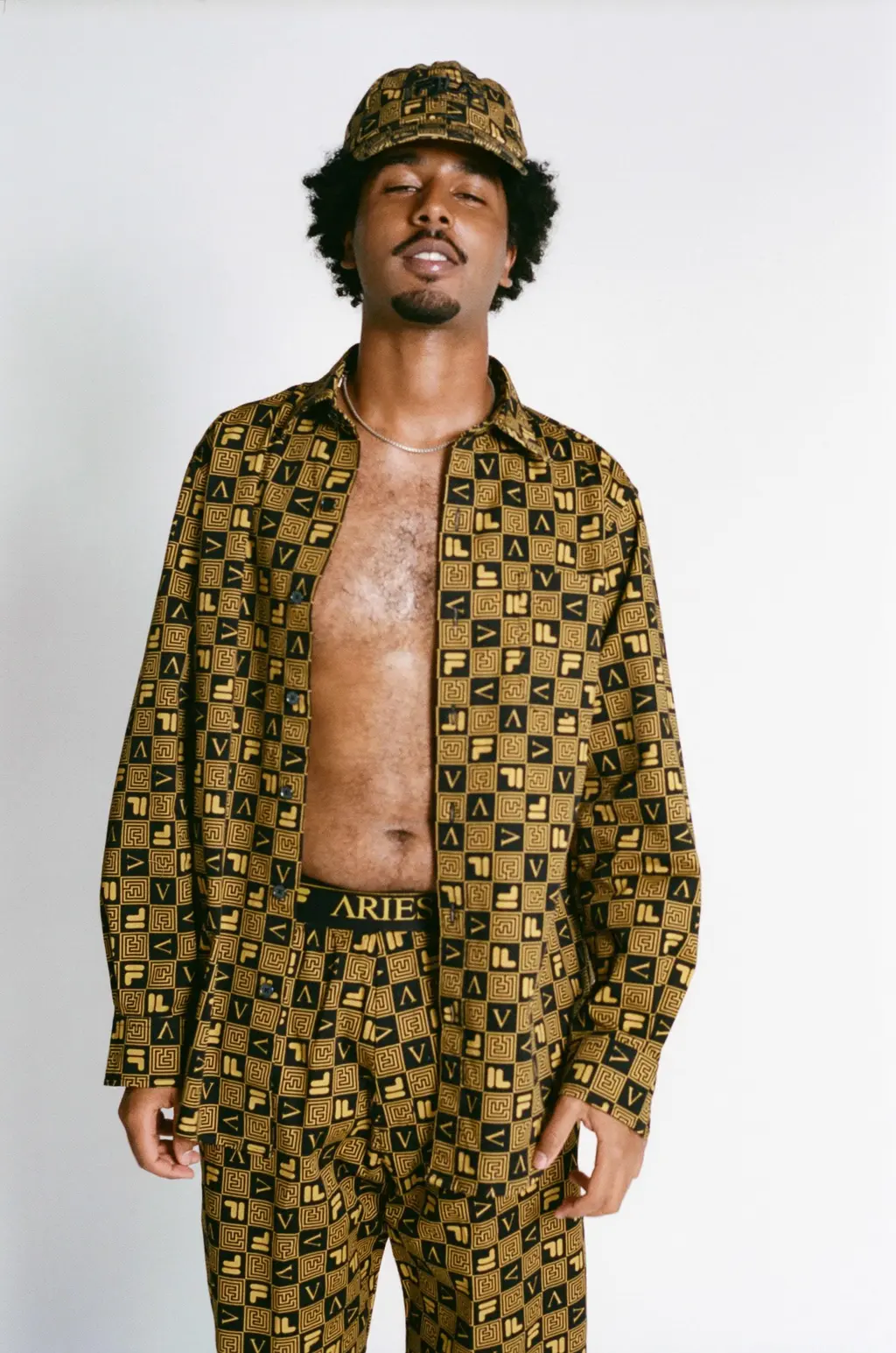 No, we’re not talking about sunbathing starkers with something ice-cold to sip, though there will naturally be some of that. We’re referencing the “FA” monogram for the new Aries x FILA collection, a sun-dappled link-up between cult streetwear brand Aries and sportswear goliath FILA.