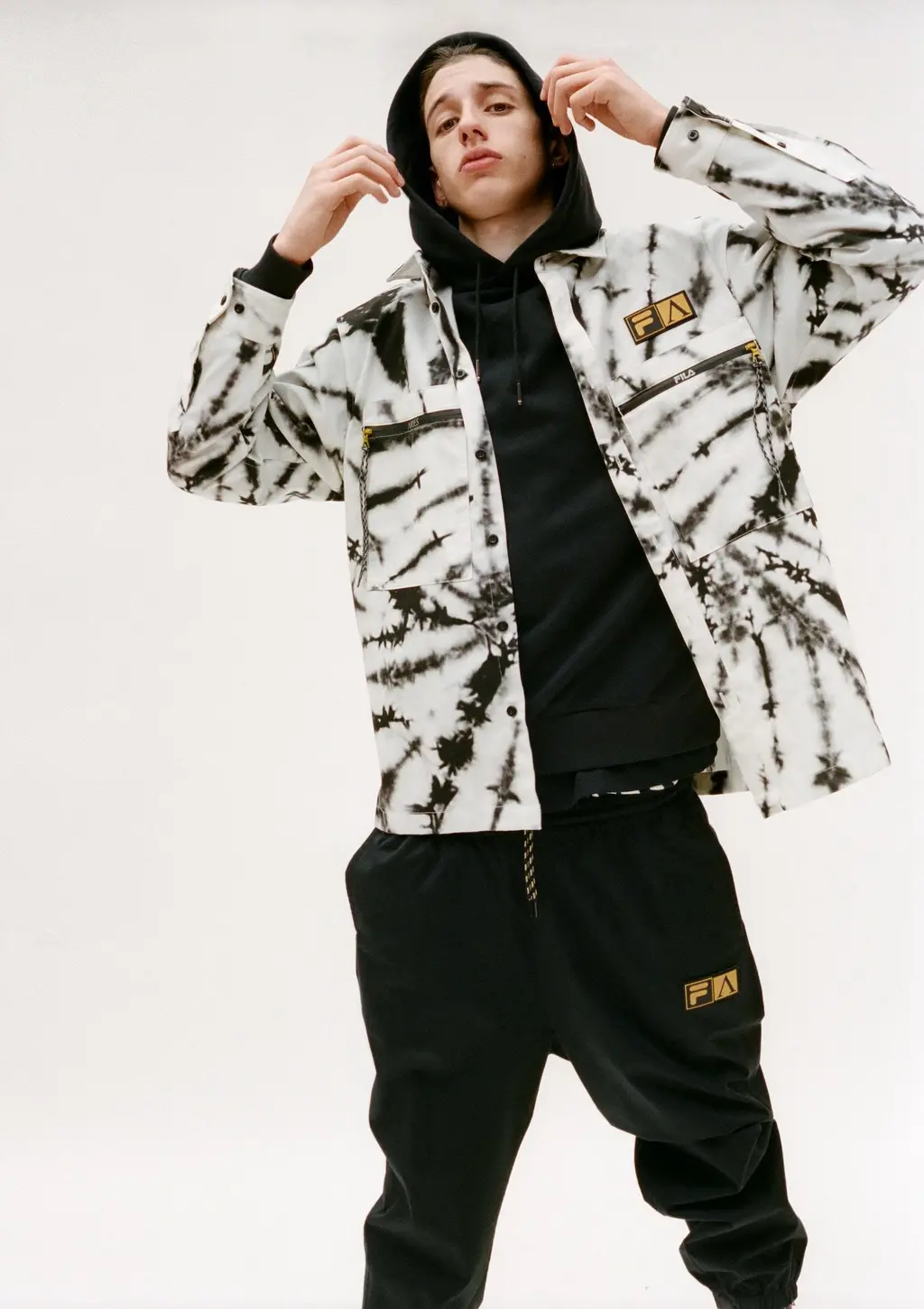 The brands’ more elevated elements – think Aries’ signature higher-end designs and Fila’s use of majestic golds, reds and creams – are spun together to take things up a notch, while still retaining the technical fabrications and sporty silhouettes. Complimenting the Grecian marble that inspires the collection’s tie-dye print, the campaign is shot at the Grande Cretto in Sicily, a huge concrete landscape conceived by artist Alberto Burri.
