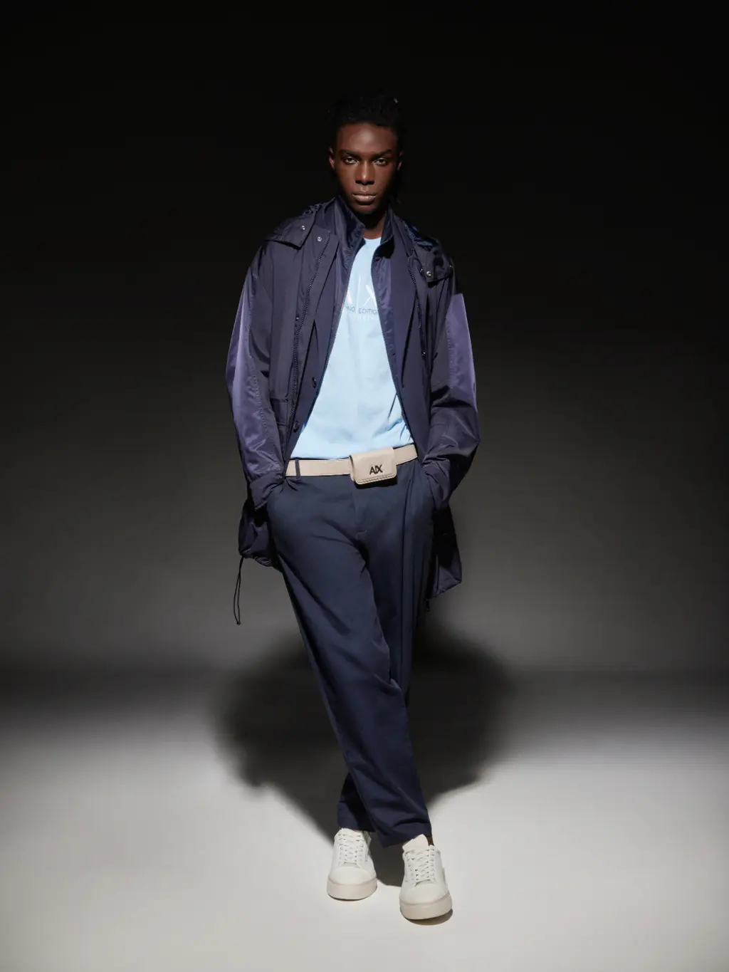 Trading on this is Armani’s youngest line A|X Armani Exchange, which is back, just in time for Milan Fashion Week, with the A|X MILANO EDITION, a unisex collection distilling the city’s spirit down to its most refined essence. Working from a colour palette of crisp business blues, rich beiges and soft reds, the capsule features capacious trenches, trusty denim jeans, rebooted suiting and easy hoodies ideal for urbanites looking for a wardrobe refurb.
