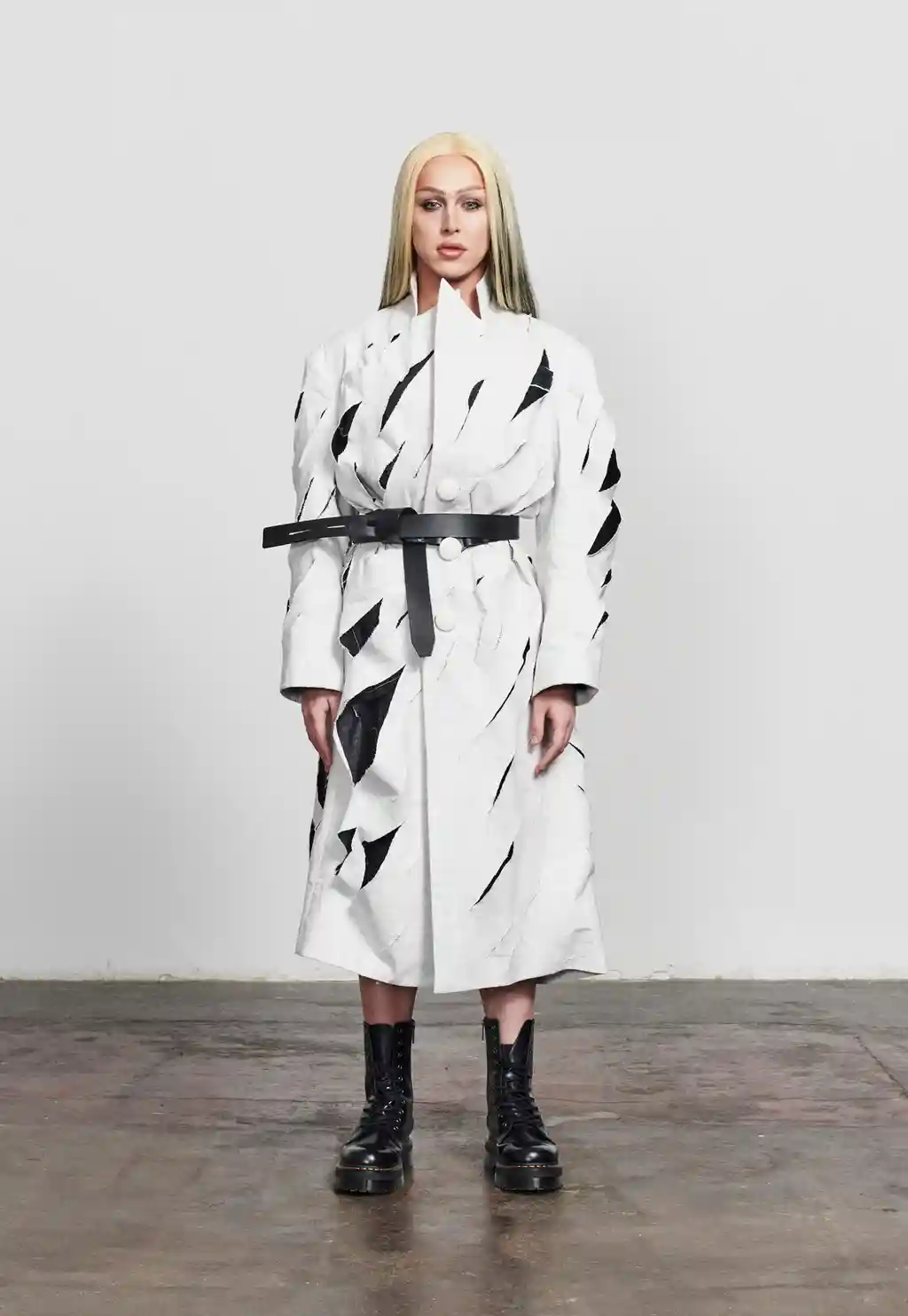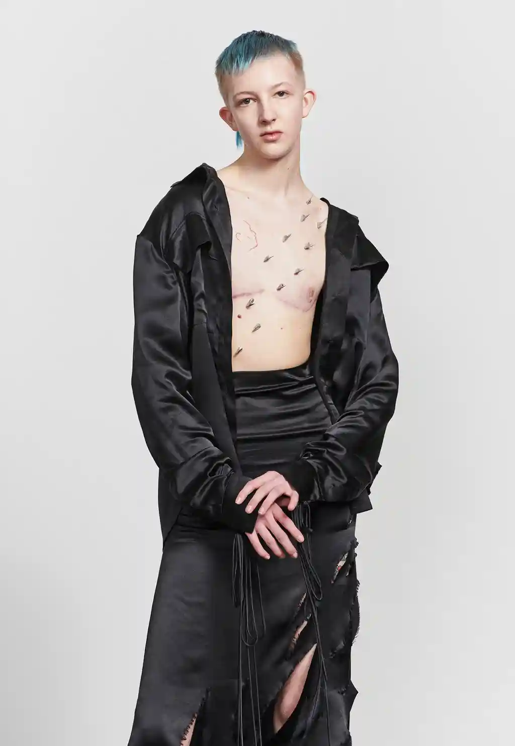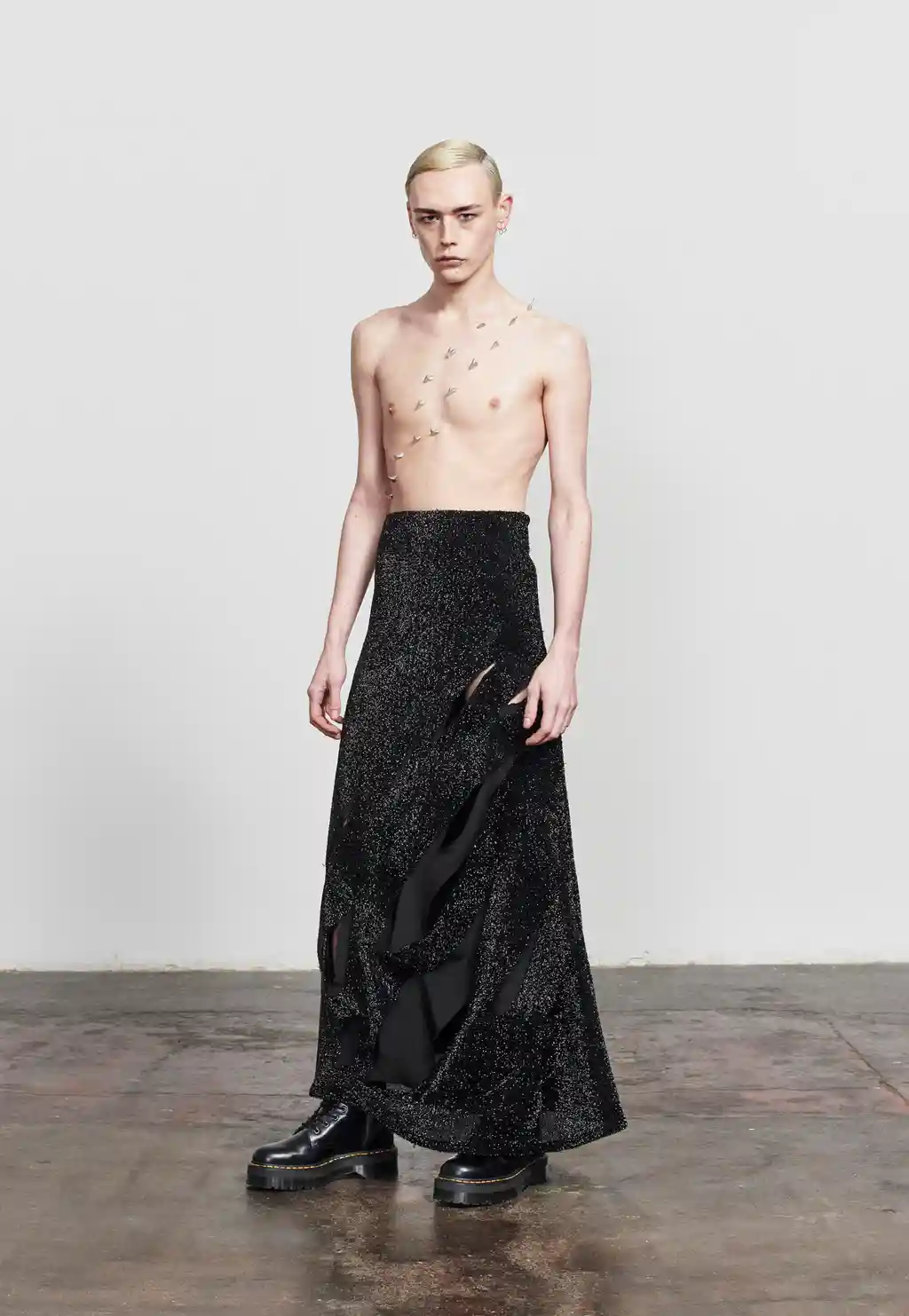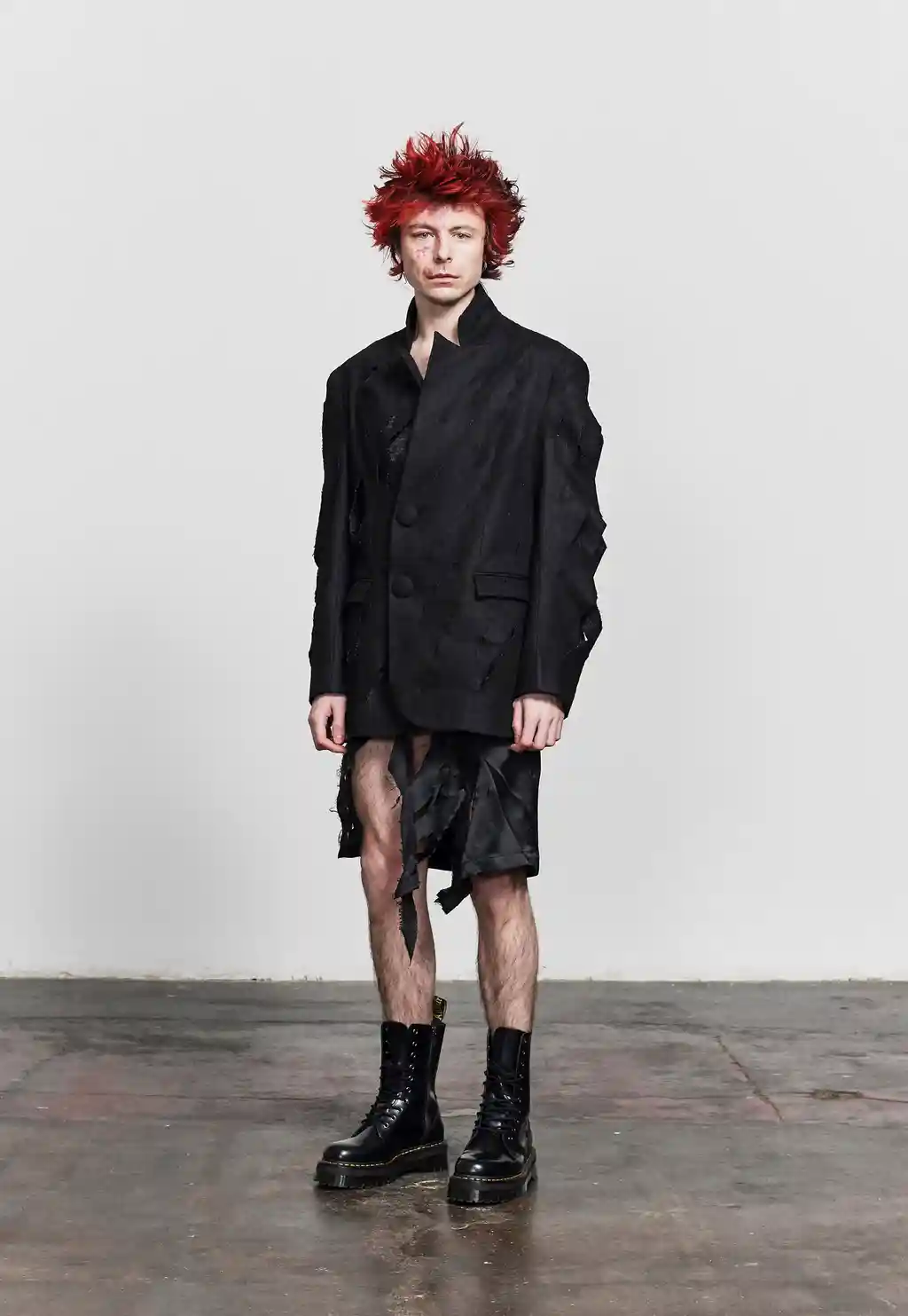 There’s a certainty in Loweth’s voice in the run-up to the collection reveal. He seems sure, optimistic and, importantly, excited to present the 41-looks. It’s a massive development from the nerves he felt mere days before presenting Therapy last season. And it comes with an assurance that this time, his vision has had him strip away anything “over performative and gimmicky”, to introduce a strong political vision that Loweth himself stands for. That’s not to say the brand has done a full 360, though – Art School is still a cross-section of communities, and a torch-bearer for diversity.