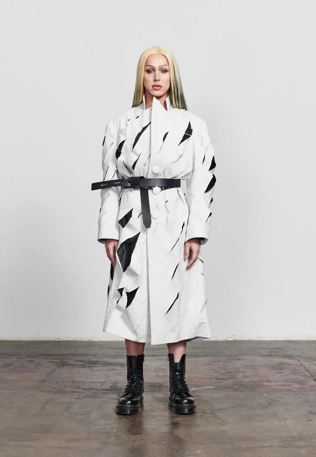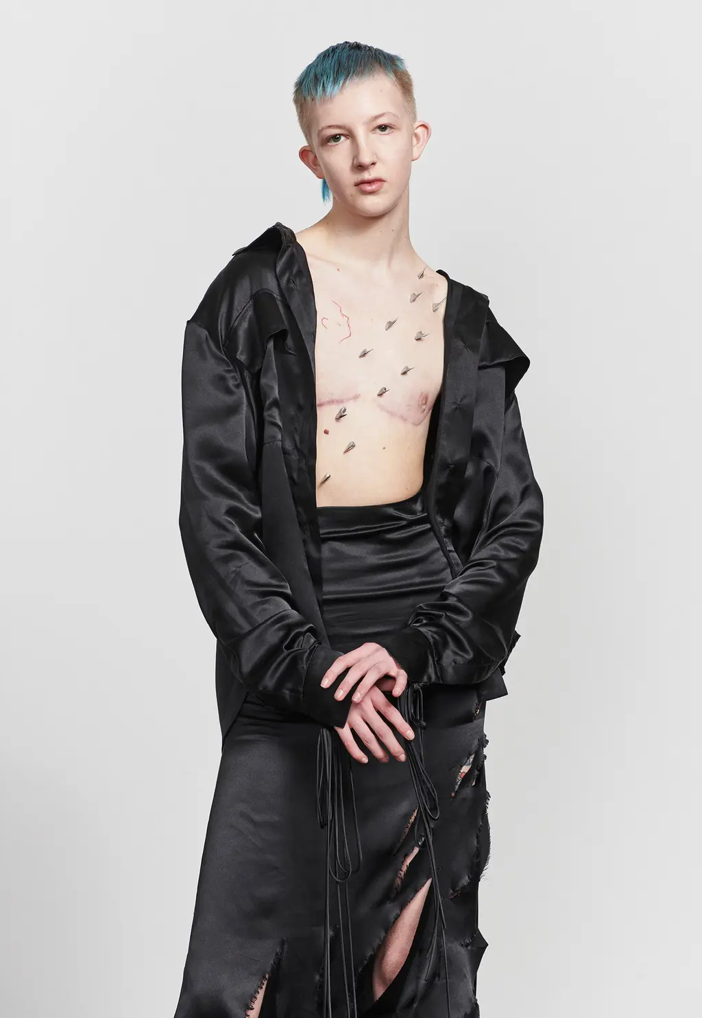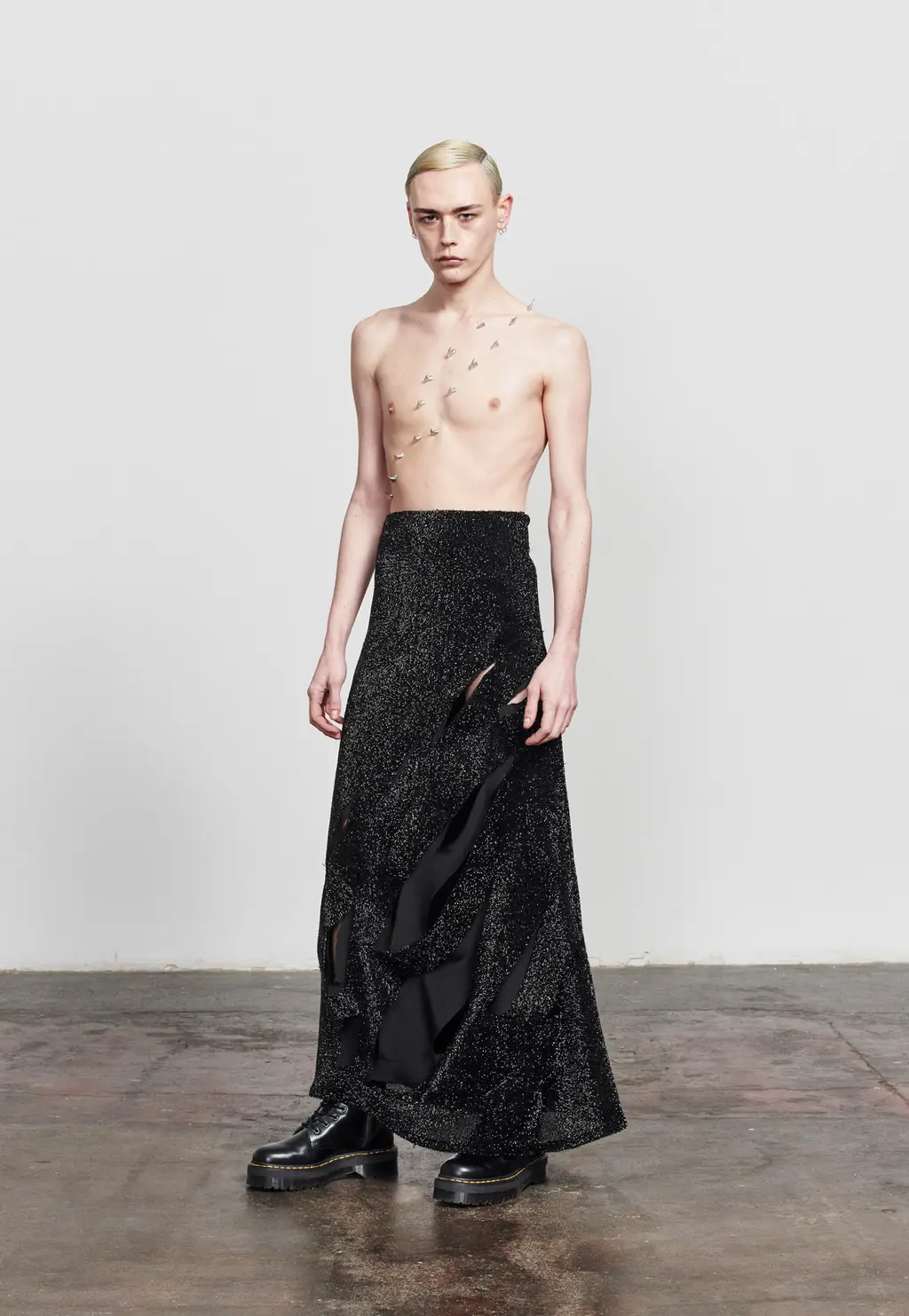 With models quite literally emerging from a cloud of dark into a not-so-distant light, this is Art School’s most conceptually-grounded collection so far. Now, Loweth is keen to shake (some) aspects of the club kid association they’ve carried since their very first show in 2019 – an intention for the title, Ascension, itself.