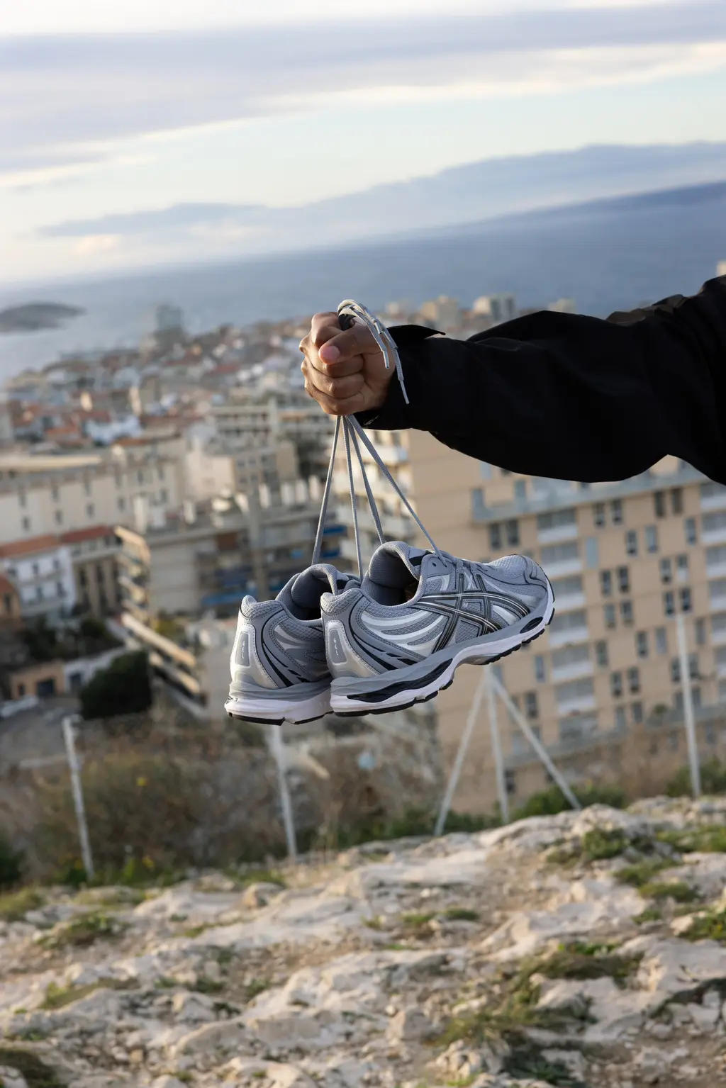 It’s fitting that Benny, JMK$ and Steban – also living embodiments of the city – have adopted the silhouette. Marseille courses through their veins, apparent in their trap productions, the hyper-local slang that peppers their lyrics and their overarching élan. It’s a unique vibe you’ll recognise the next time you’re strolling through Marseille’s pulsing streets, ready to scale the limey rocks in your own GEL-SEKIRANs.