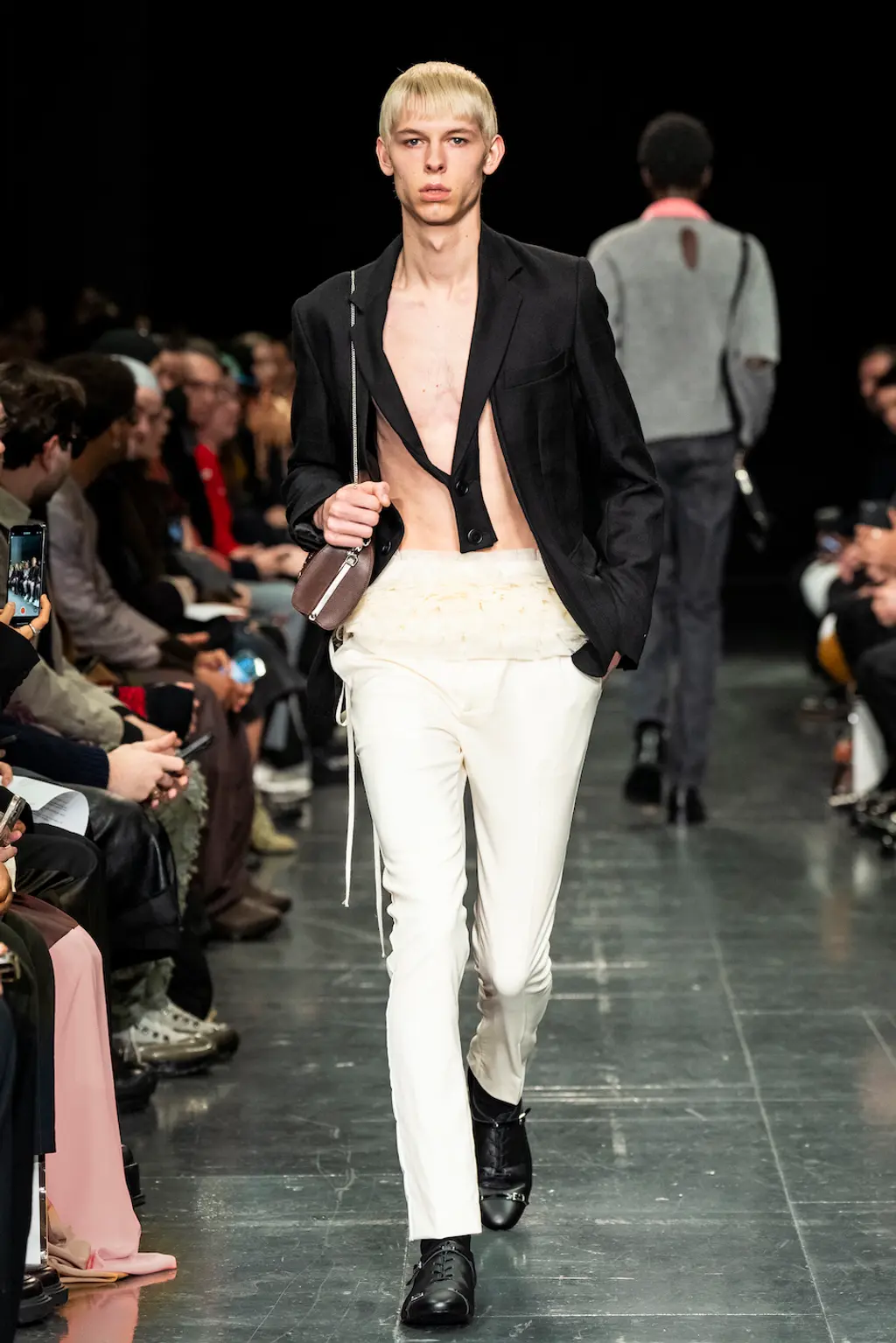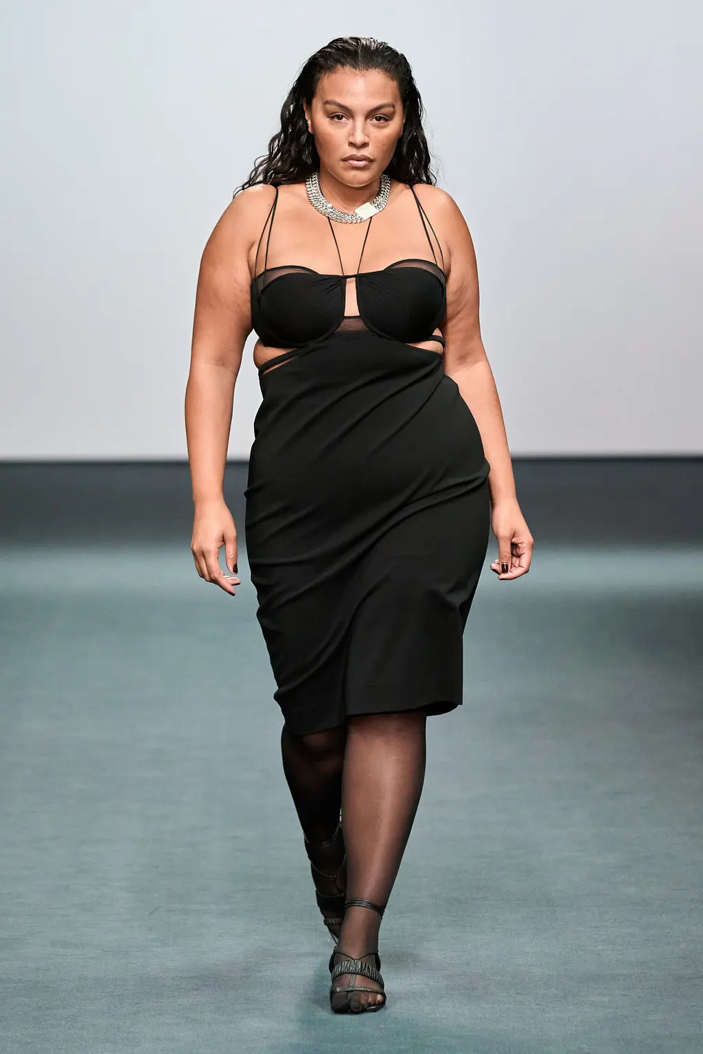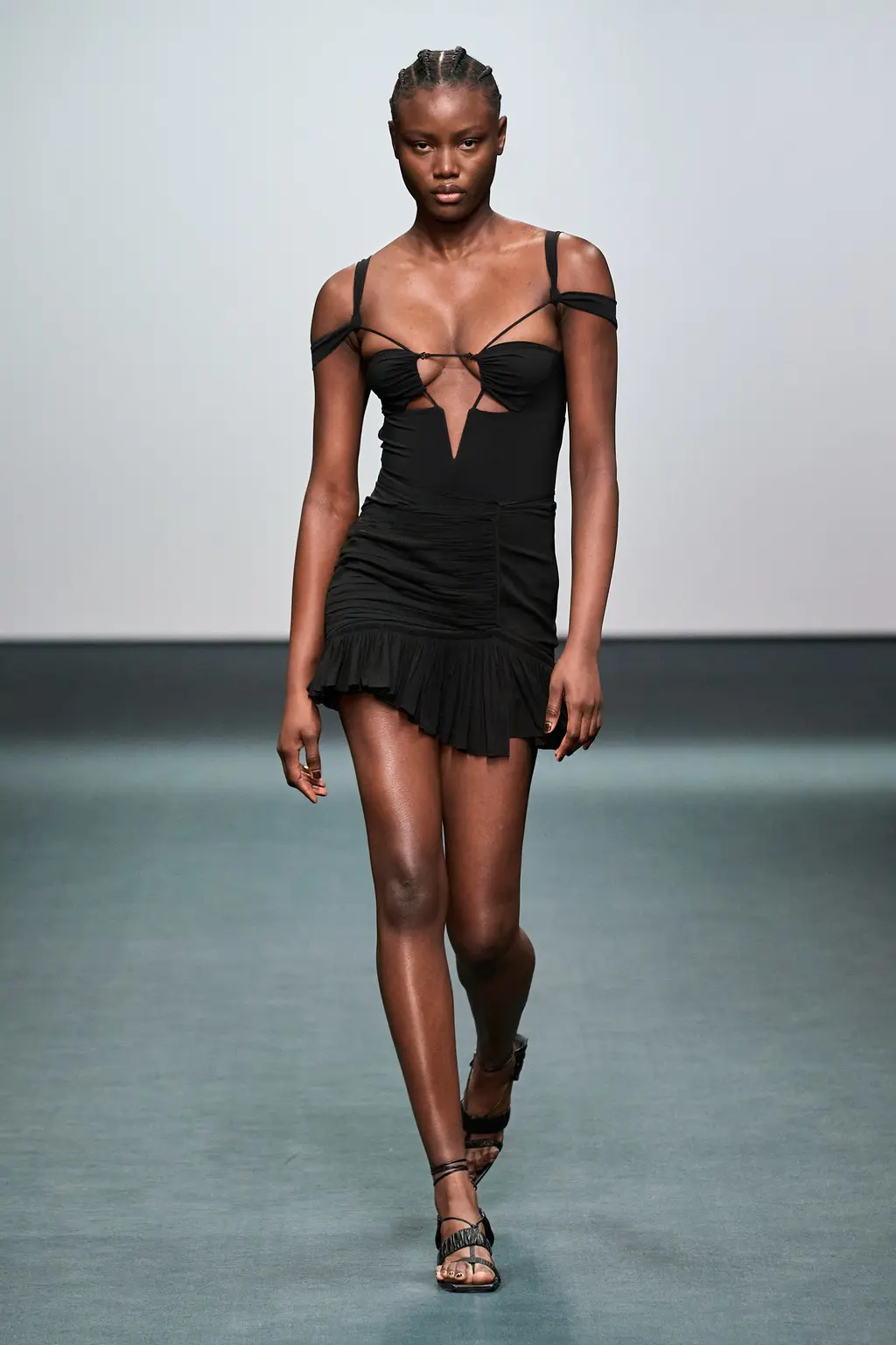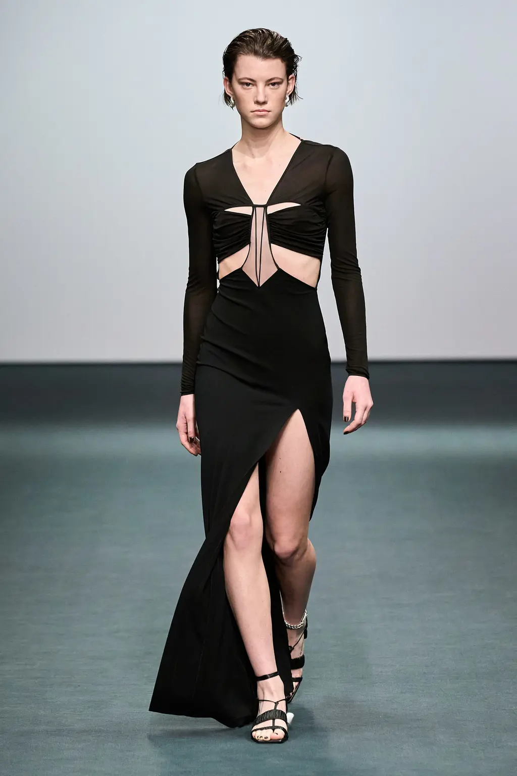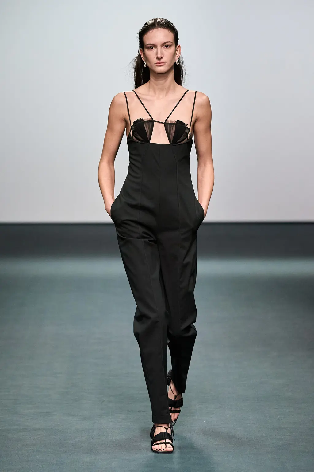 First things first, the casting at Nensi Dojaka was on point this season. The LVMH prize winner was in danger – striking as her designs were – of looking like she catered only to the very thin and minimally breasted, so it was a relief this season to see Dojaka hit her stride with a collection that featured her trademark details – cut-outs, sheer fabrics, delicate shapes and panels straight out of the lingerie world – while suggesting a much greater willingness to think about potential wearers. Taking her cue from Irving Penn’s flower photos, colours ranged from blushing pinks to deepest blacks and incorporated new materials including velvet and stretch jersey. Dojaka’s vision of femininity is sensual and sexy, now ready to wrap around a multitude of women — those ready to shimmy themselves into her body contoured creations, and a pair of Lucite strappy shows, with cool confidence and ease.