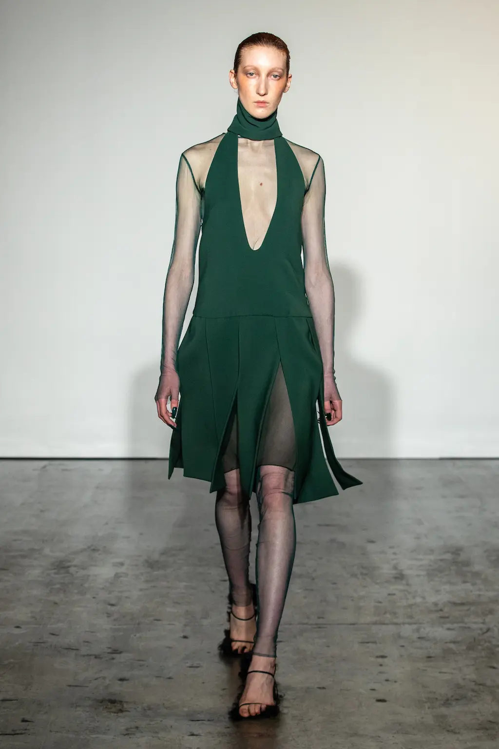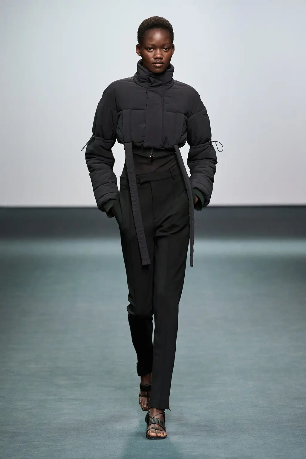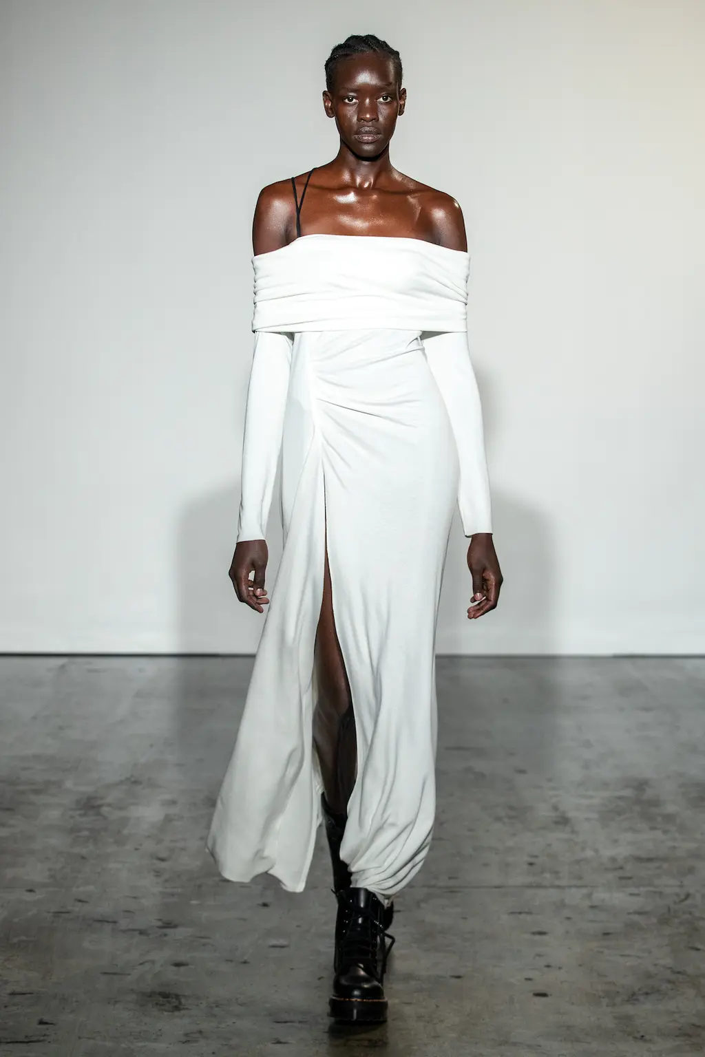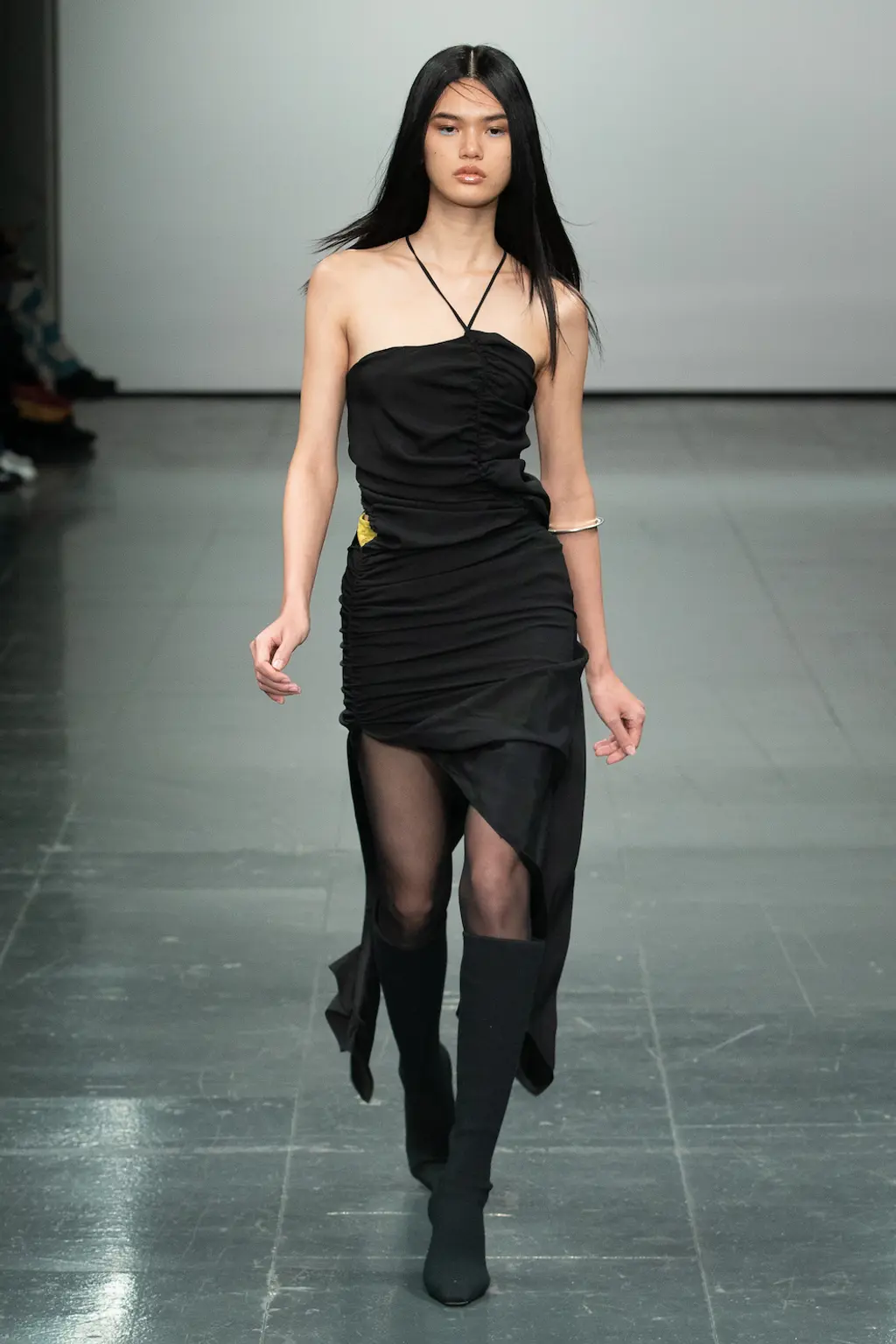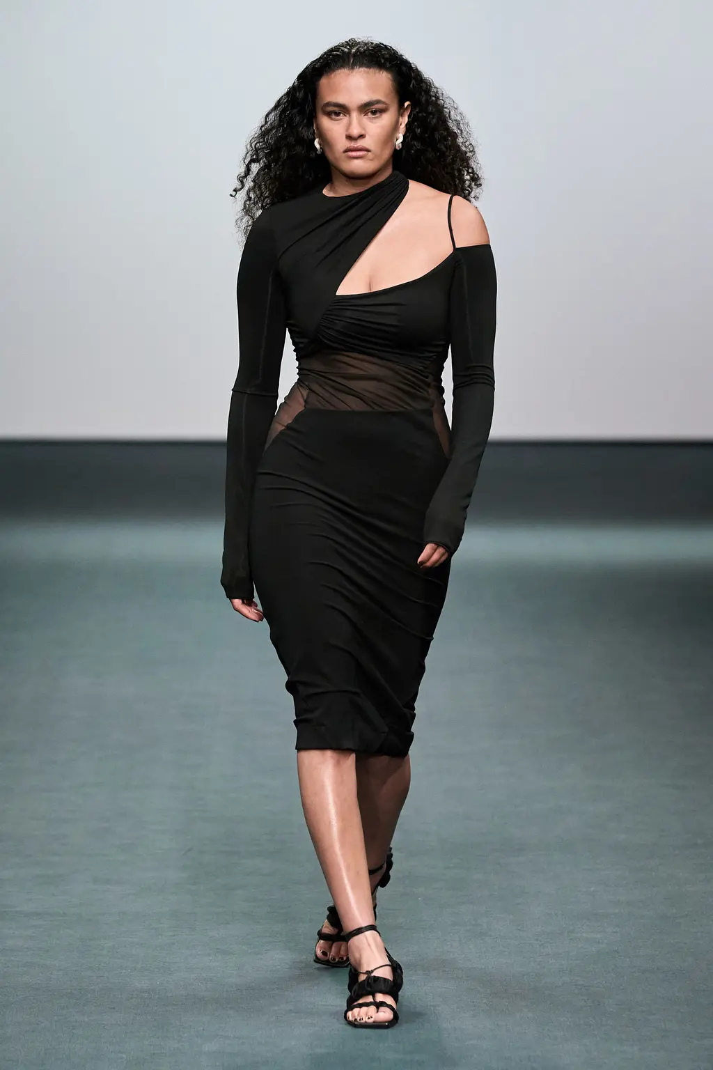 First things first, the casting at Nensi Dojaka was on point this season. The LVMH prize winner was in danger – striking as her designs were – of looking like she catered only to the very thin and minimally breasted, so it was a relief this season to see Dojaka hit her stride with a collection that featured her trademark details – cut-outs, sheer fabrics, delicate shapes and panels straight out of the lingerie world – while suggesting a much greater willingness to think about potential wearers. Taking her cue from Irving Penn’s flower photos, colours ranged from blushing pinks to deepest blacks and incorporated new materials including velvet and stretch jersey. Dojaka’s vision of femininity is sensual and sexy, now ready to wrap around a multitude of women — those ready to shimmy themselves into her body contoured creations, and a pair of Lucite strappy shows, with cool confidence and ease.