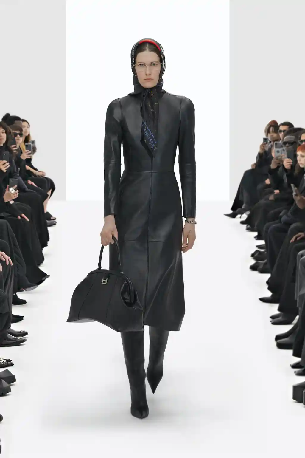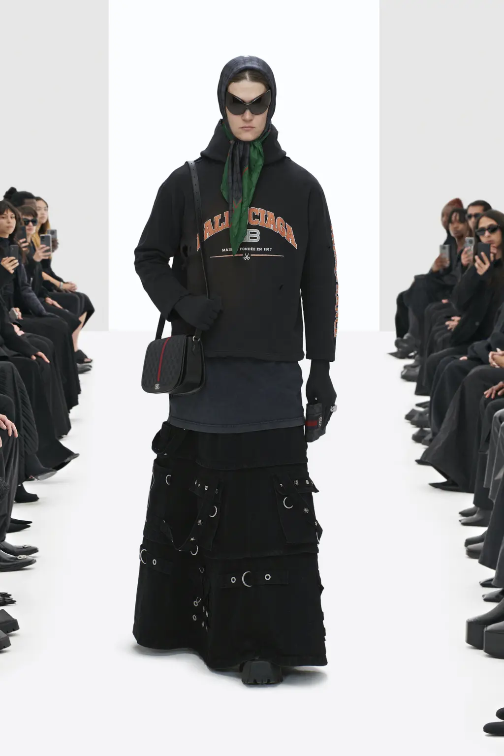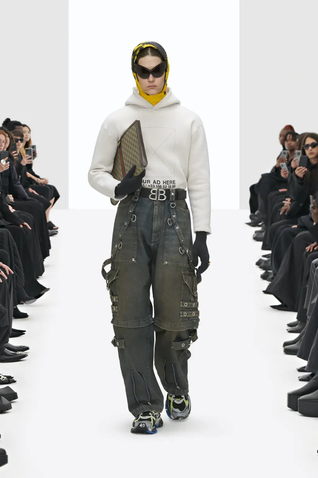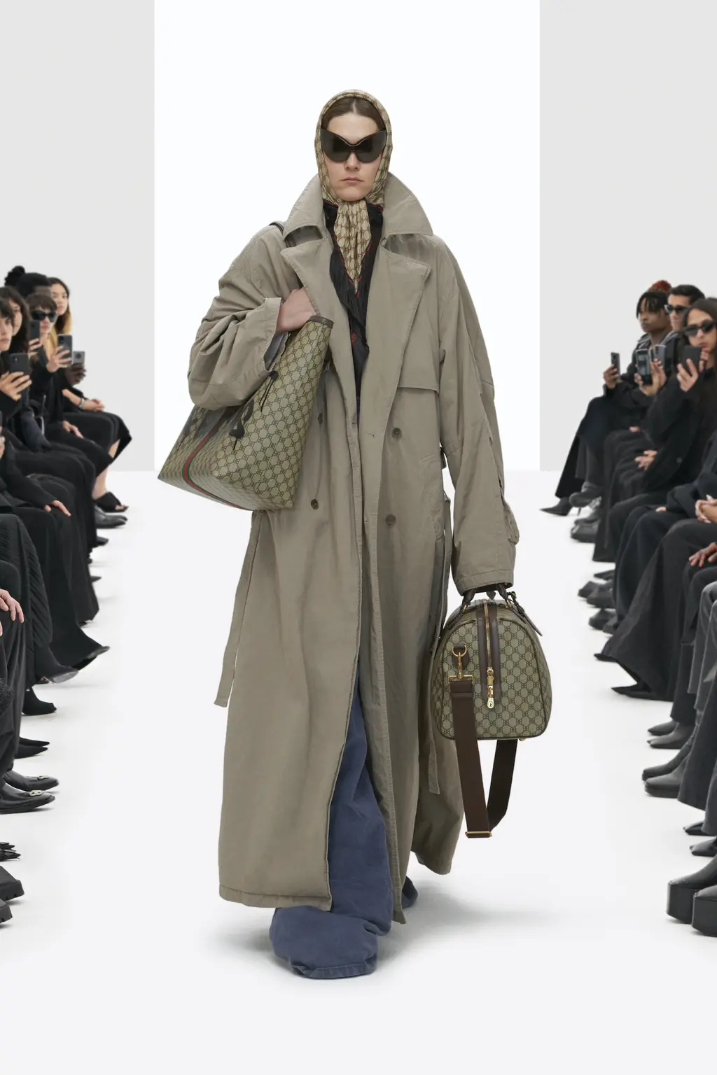 The non-Guccified accessories were similarly familiar: supermarket-style shopping bags, Crocs and pointy boots, headscarves and cyber-goth sunglasses, plus a fresh take on archive Balenciaga crystal bows.