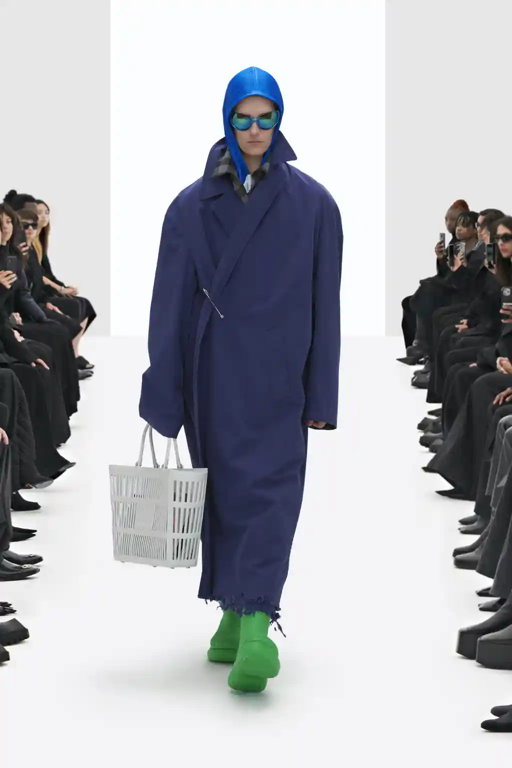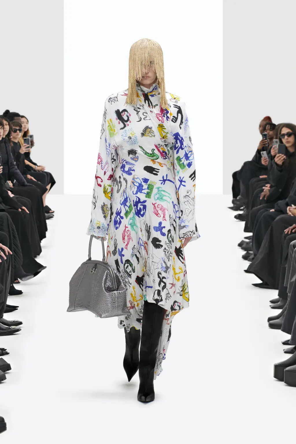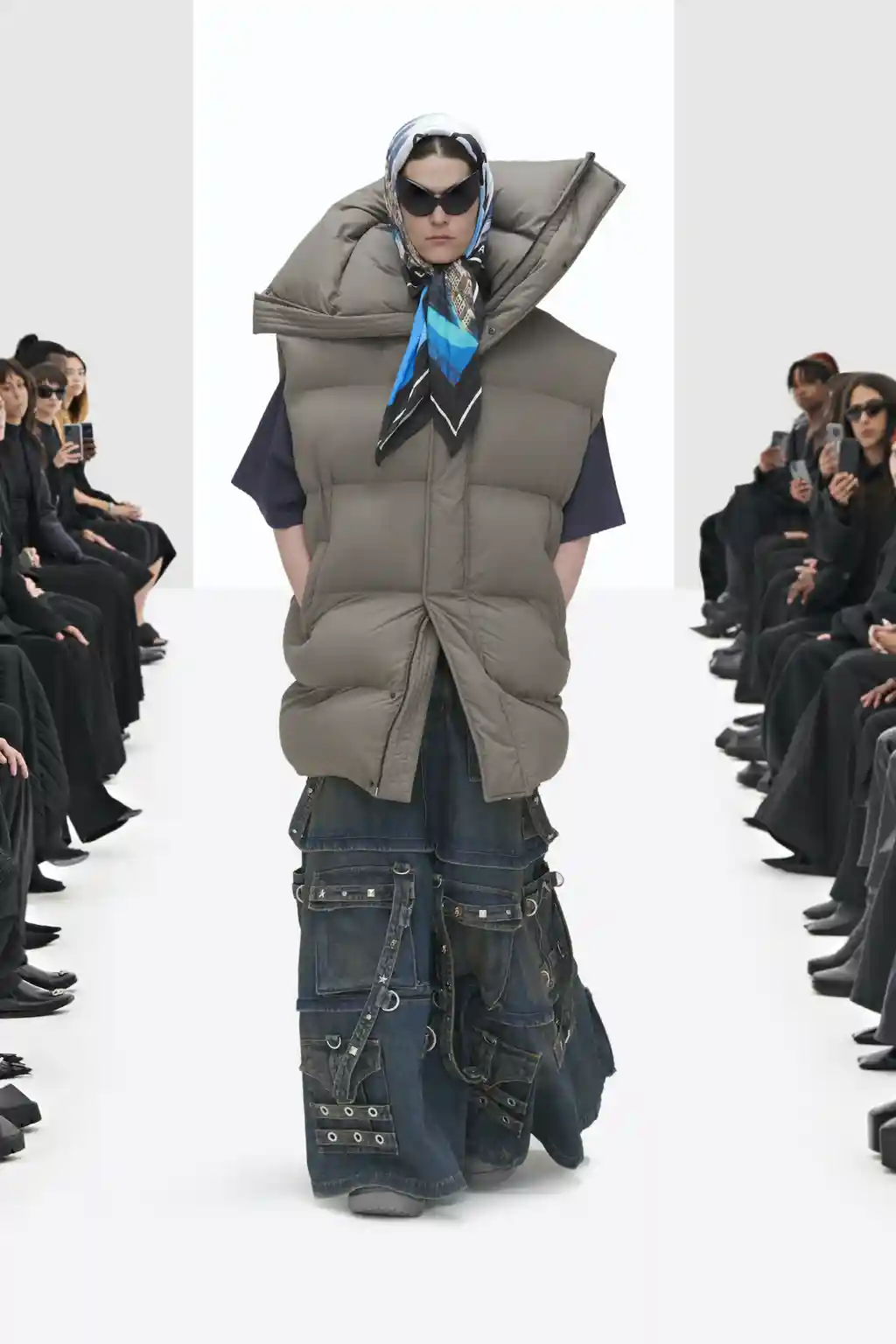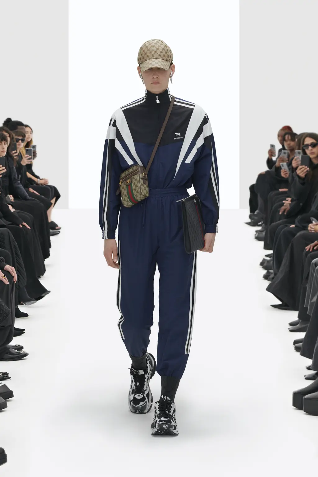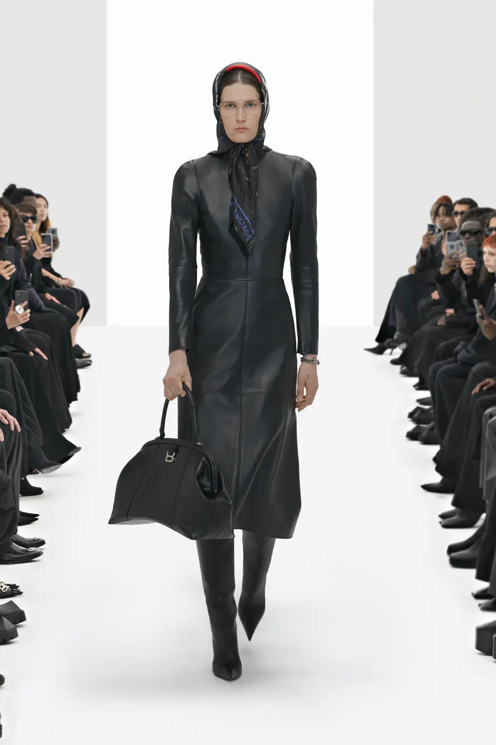 The non-Guccified accessories were similarly familiar: supermarket-style shopping bags, Crocs and pointy boots, headscarves and cyber-goth sunglasses, plus a fresh take on archive Balenciaga crystal bows.