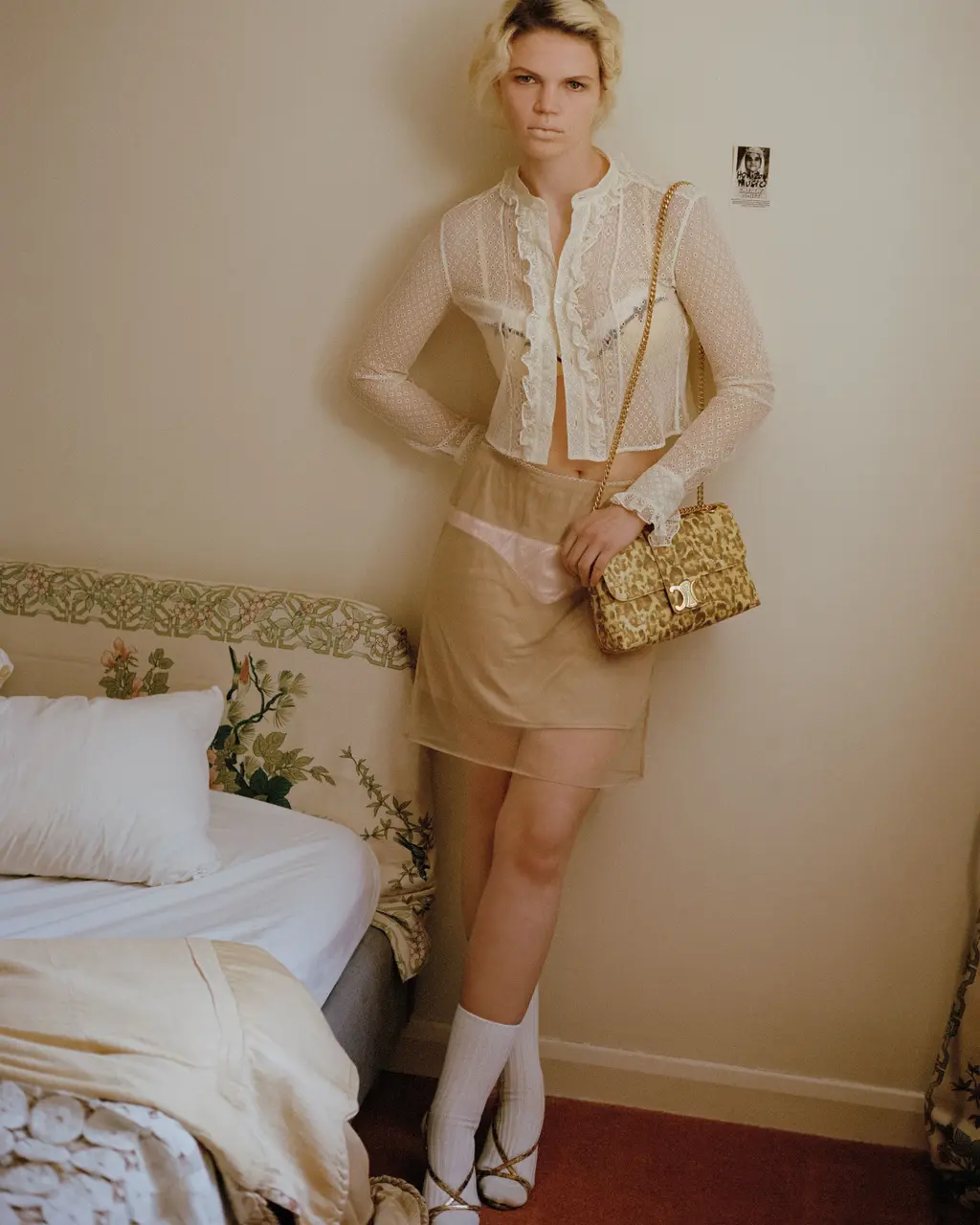 shirt, bag and shoes CELINE BY HEDI SLIMANE, skirt JENNY FAX and socks FALKE