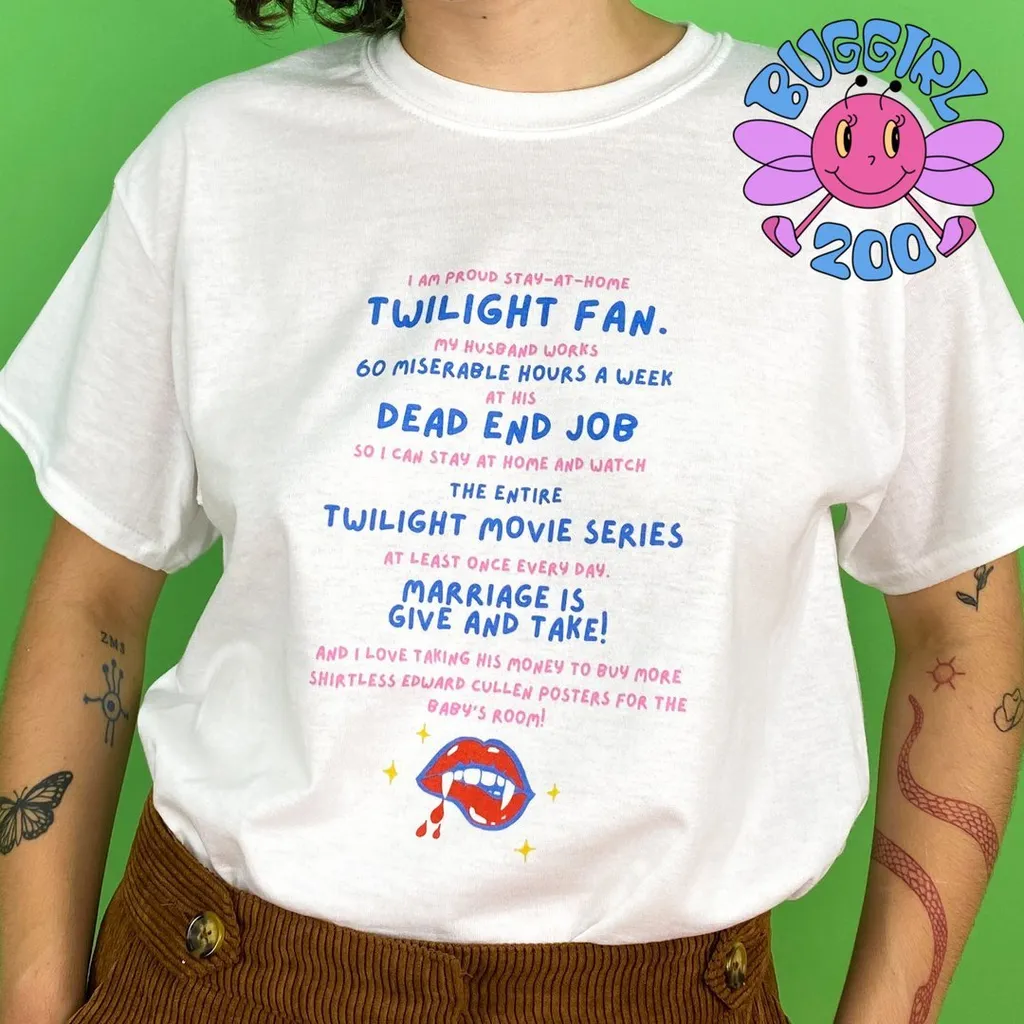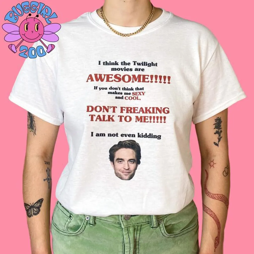 Twilight’s resurgence comes drenched in irony, which is only made funnier by the disdain its main stars, Robert Pattinson and Kristen Stewart, have for the franchise. Two years ago, W magazine published an exhaustive list of every bad thing Pattinson and Stewart had to say about Twilight since its release, while DIY compilations of R‑Patz’ various anti-Twilight comments have garnered millions of views. Who knows, maybe he secretly owns one of these subversive merch items himself.