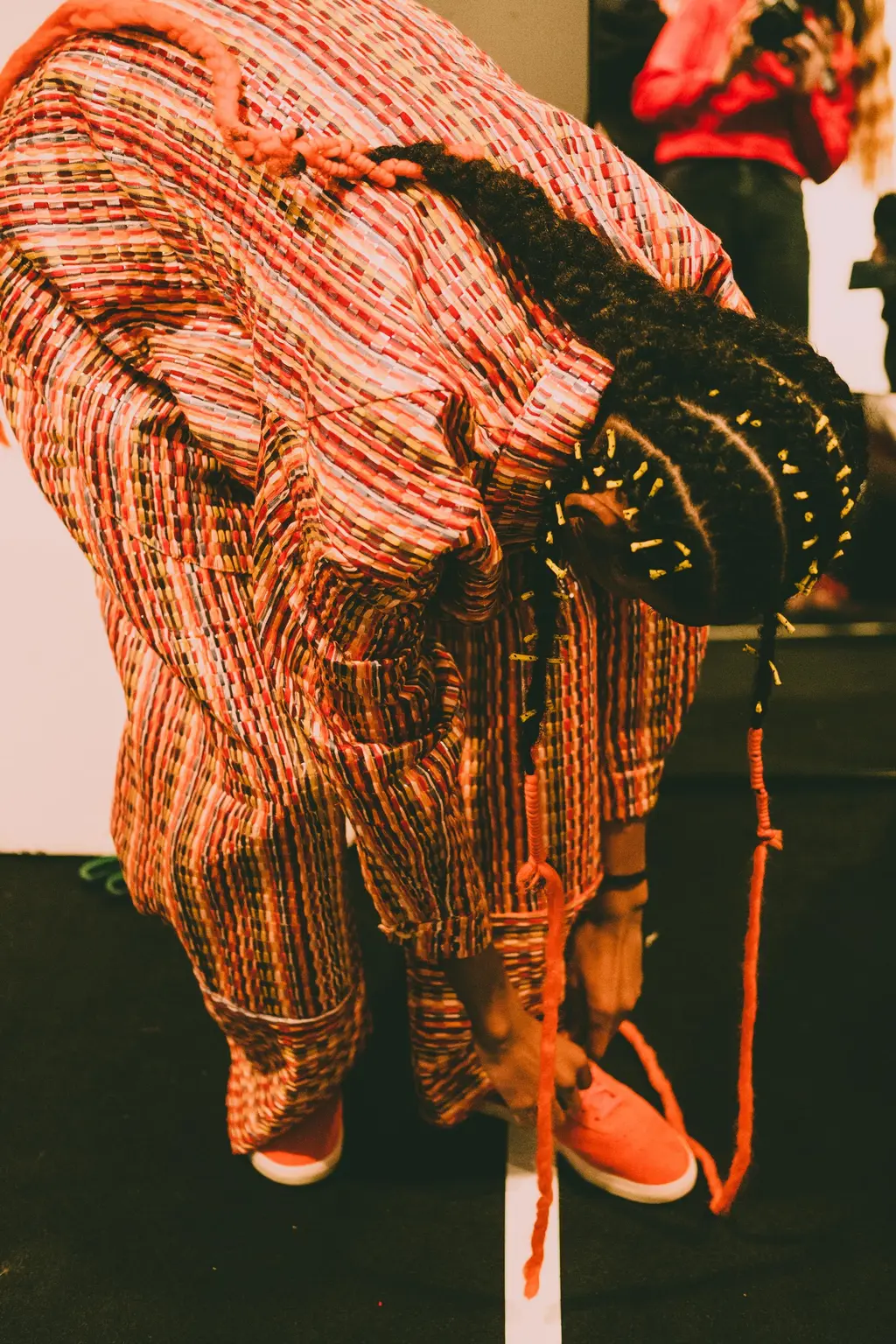 Bethany Williams is sat on the floor in her Hackney-based studio, surrounded by fabric offcuts and bag patterns, mid-preparation for a collaborative workshop with Adidas.