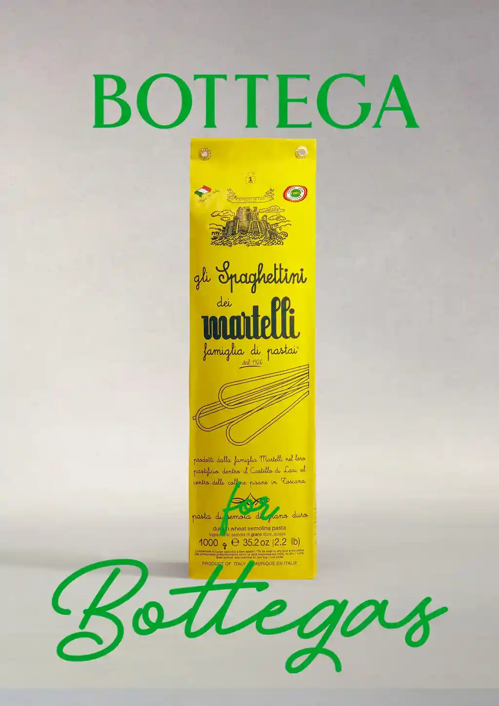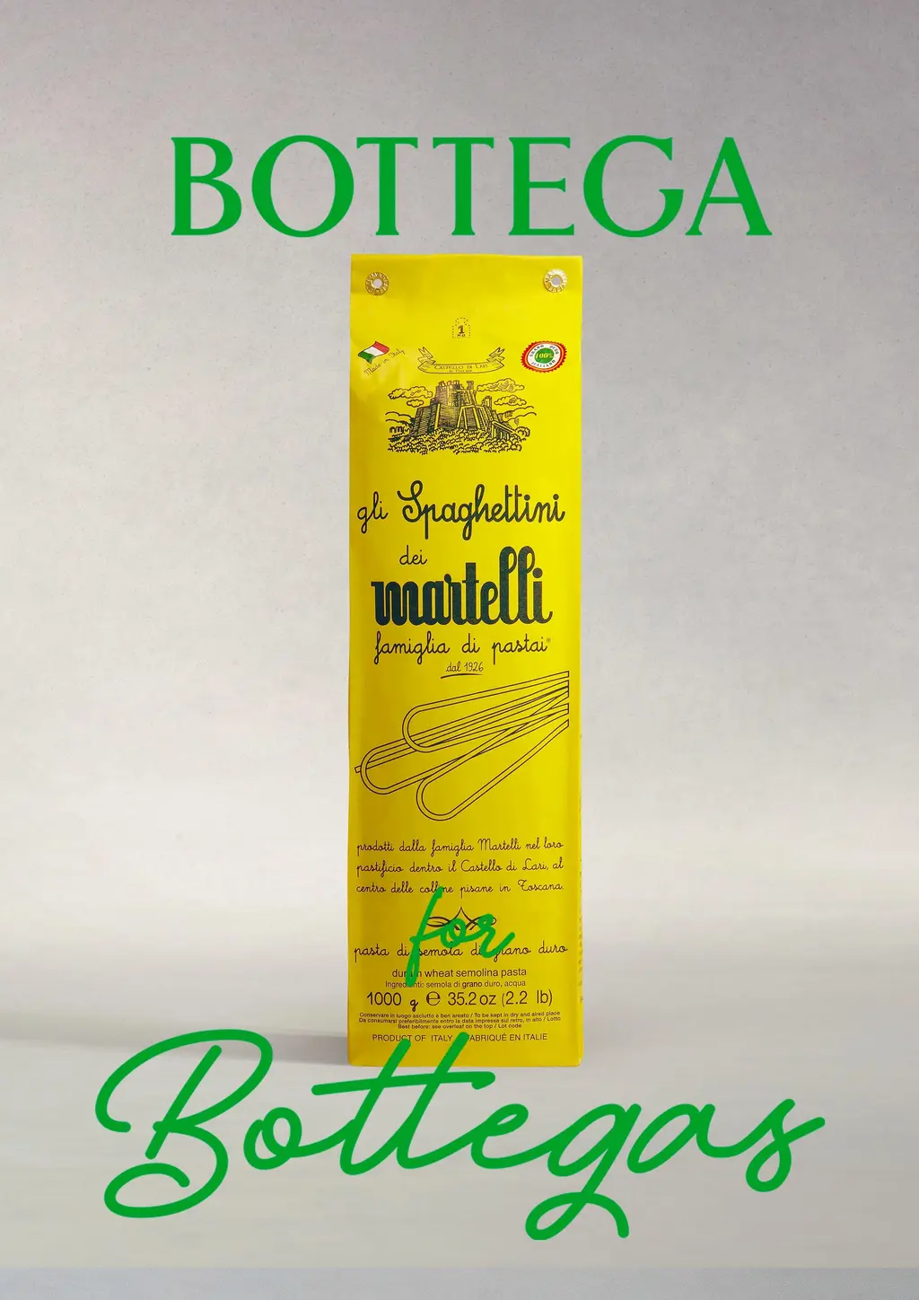 Similarly, Laura Martelli of pasta manufacturers Pastificio Martelli is looking forward to the project, hoping that it will give her family’s company some well-deserved spotlight: “Thanks to the Bottega for Bottegas project, our product in particular, and the Made in Italy in general, will shine as it’s deserved. We are proud to have been chosen by Bottega Veneta.”