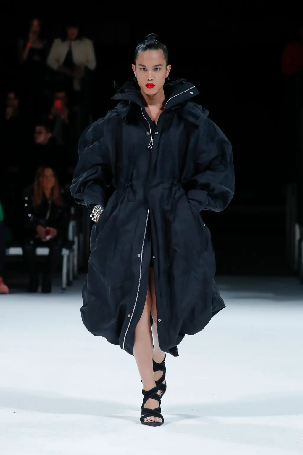 As ever, bold silhouettes were a standout element of the collection, courtesy of exaggerated round shoulders on parkas and tailored jackets, and an array of balloon and leg of lamb sleeves, which lent an air of Lord Byron-esque romanticism to flowing shirts and dresses.