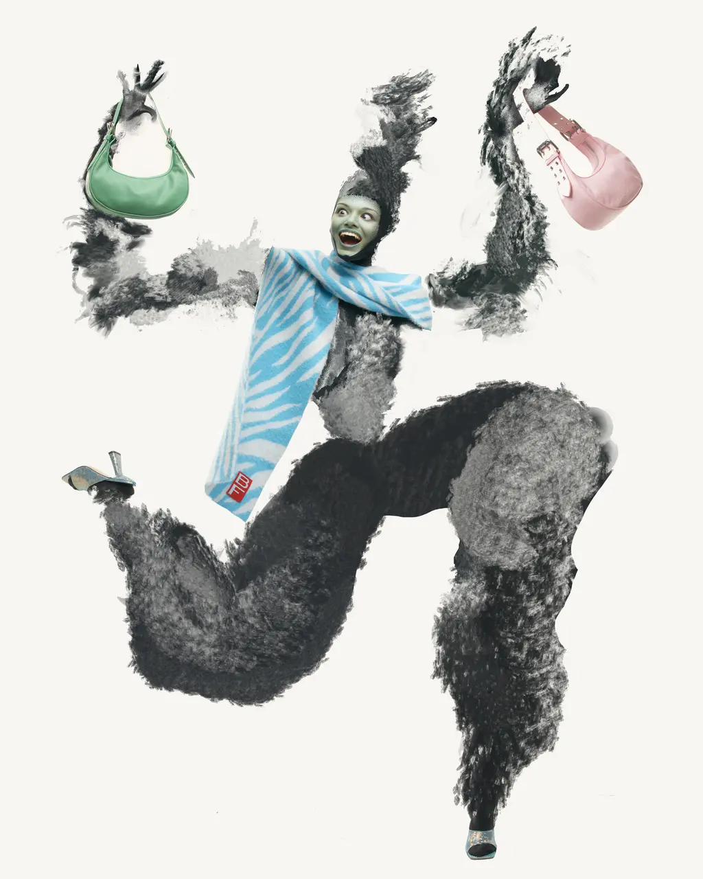 The collection also sees the brand introduce knitwear for the first time – plush, oversized scarves made from an ethically sourced alpaca fibre with recycled polyamide – as well as a range of sleek, gold-buckled belts in a typically broad spectrum of colours. “Belts seemed like an obvious choice [because they’re] the ultimate finishing touch to any outfit,” Ignatova says. “We’ve made five styles, from super thin to extra-wide, so you can mix and play endlessly.”