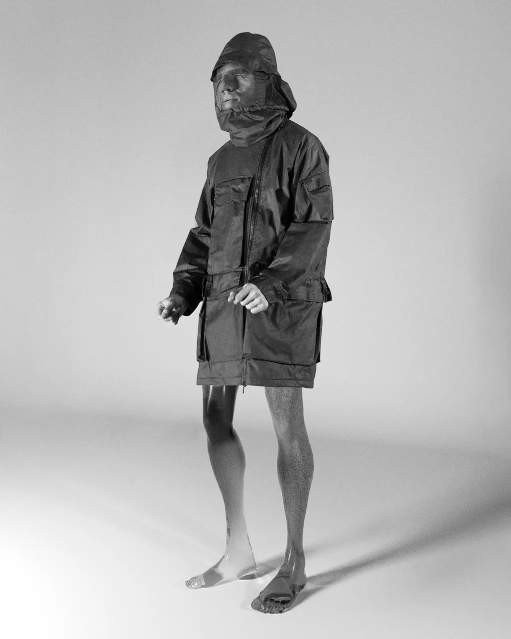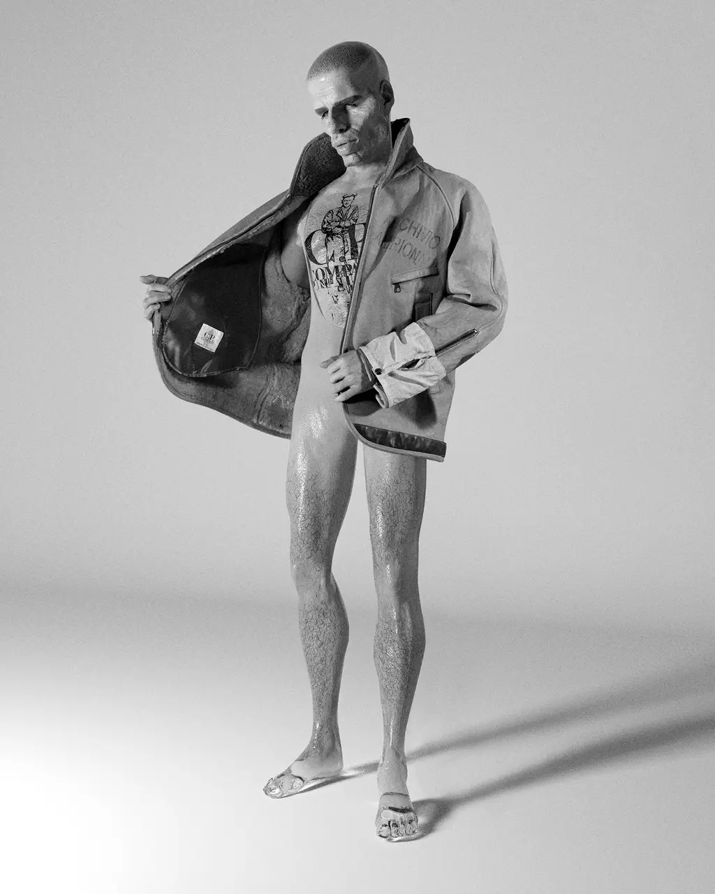 To celebrate C.P. Company’s 50th anniversary, THE FACE called upon tech-savvy photographer Till Janz and stylist Julian Ganio to explore and interpret the brand’s extensive archive. The resulting images, published in our summer issue, take inspiration from the brand’s pioneering development of second-skin garments that are as durable as they are wearable. The story’s protagonist is a futuristic humanoid named Hugo, who has travelled across the universe to play dress up in some of C.P. Company’s greatest hits. There’s the Goggle Jacket, originally released in 1988, which includes protective lenses sewn into the hood inspired by anti-gas outfits used in combat. Another, later version includes built-in gloves and is designed to fit the body perfectly when seated in a driving position. Hugo appears to be preparing for some form of dystopian, decades-away battle; the C.P. Company items he sports play the role of intuitive armour.