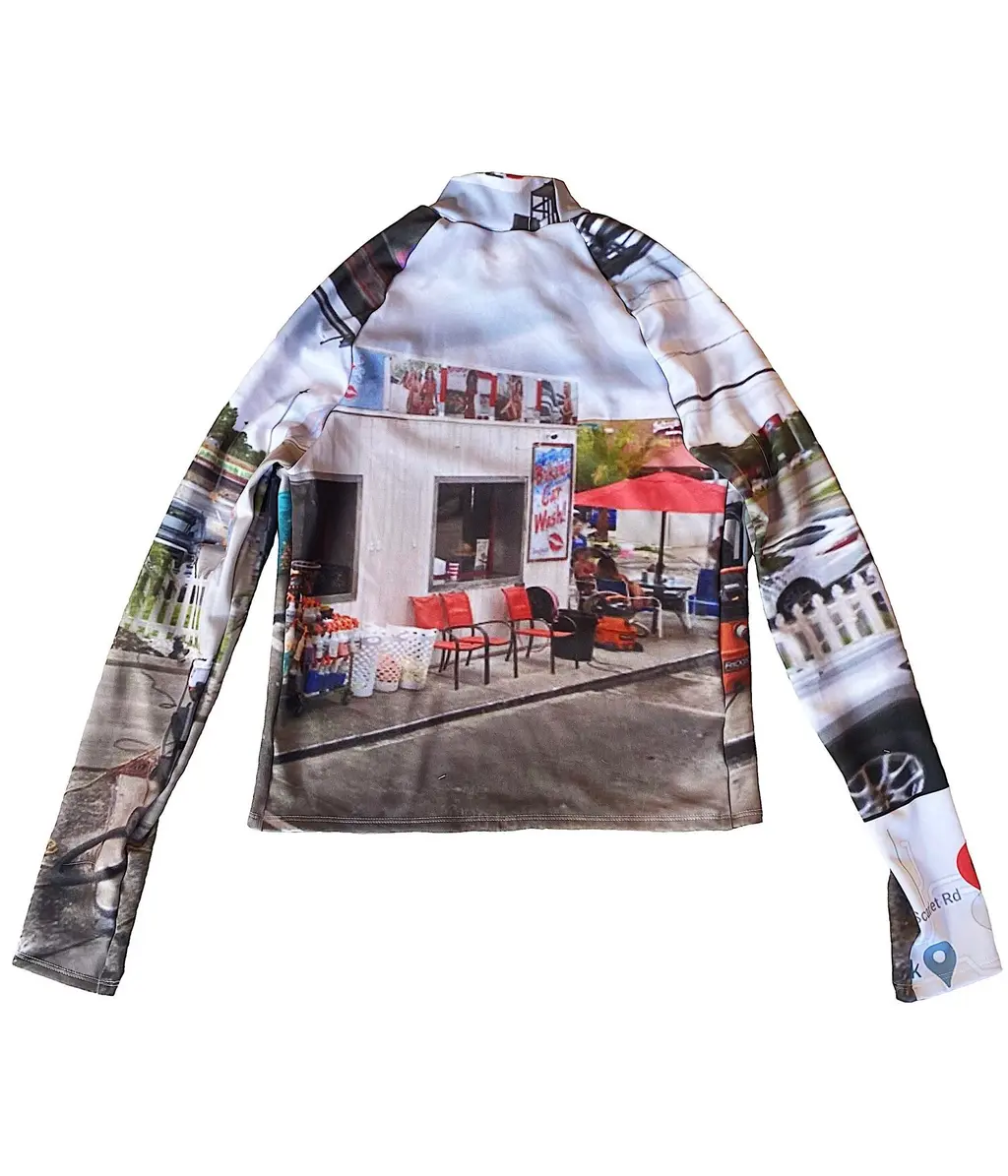 Yates mainly finds her Google Maps scenes on dedicated groups buried in the depths of Reddit and Facebook, and currently has a folder of over 300 odd-ball snapshots sitting on her computer, ready to be whacked on tops, bomber jackets or a pair of jeans, at any given moment.
