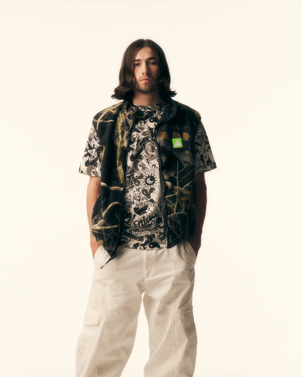 Kiko Kostadinov makes a case for a less in-your-face take on the trend. His SS22 collection was more about ease and comfort – slouchy soft T‑shirts, layers and an icy-blue windbreaker is enough to suffice. But fret not. Those wanting to get proper geared up can look to Stüssy, Palace and Stone Island this season. They’re all going camping, whether it’s via Gore-tex tracksuits, camo trousers, landscape prints or runner caps.