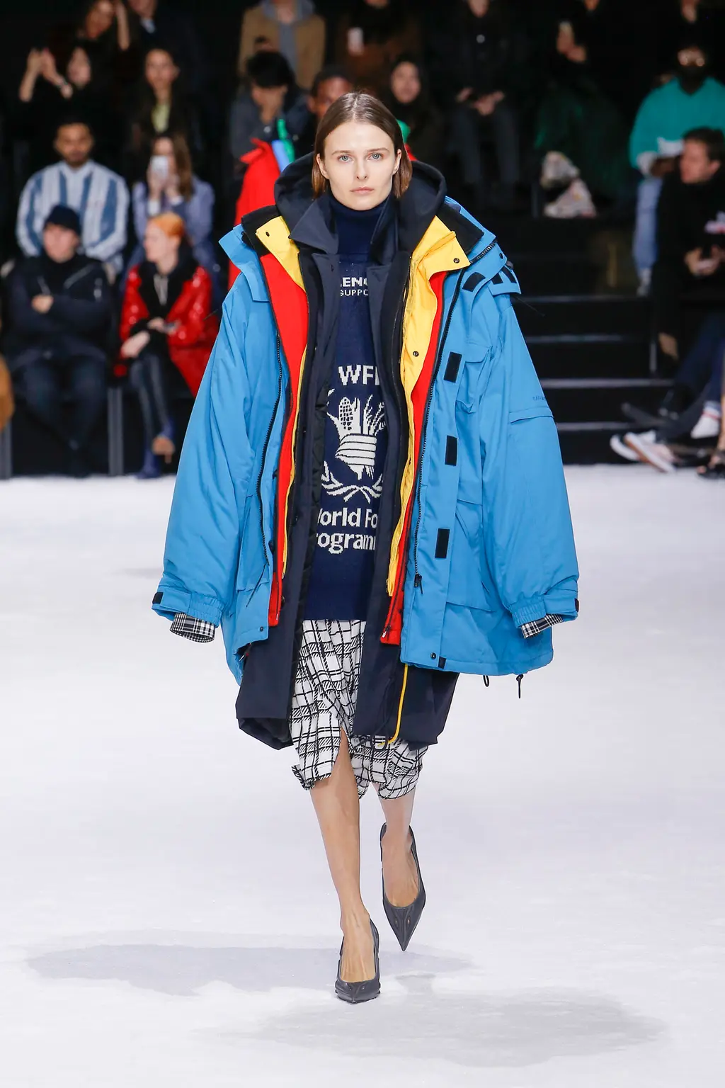 Balenciaga continued camp-wear for their AW18 collection. Namely, parkas that exploded in size: a seven-layer jacket made of plaid shirts, fleeces and technical fabrics, it was fashion as utility, maximalised and meme-ready for the internet generation. Within hours, it was being likened to that episode of Friends where Joey wears all of Chandler’s clothes. But the codes of utility dressing had now officially shifted: Demna Gvasalia made fashion funny and that’s an important landmark in the camping trend. It’s quite humorous to look like a geek and – crucially – not so put together, isn’t it? Gvasalia sending a coat that could double-up as a tent down the runway aimed to send a clear message to Balenciaga’s young fans and followers: camping is cool. Alright, probably not – but it worked.