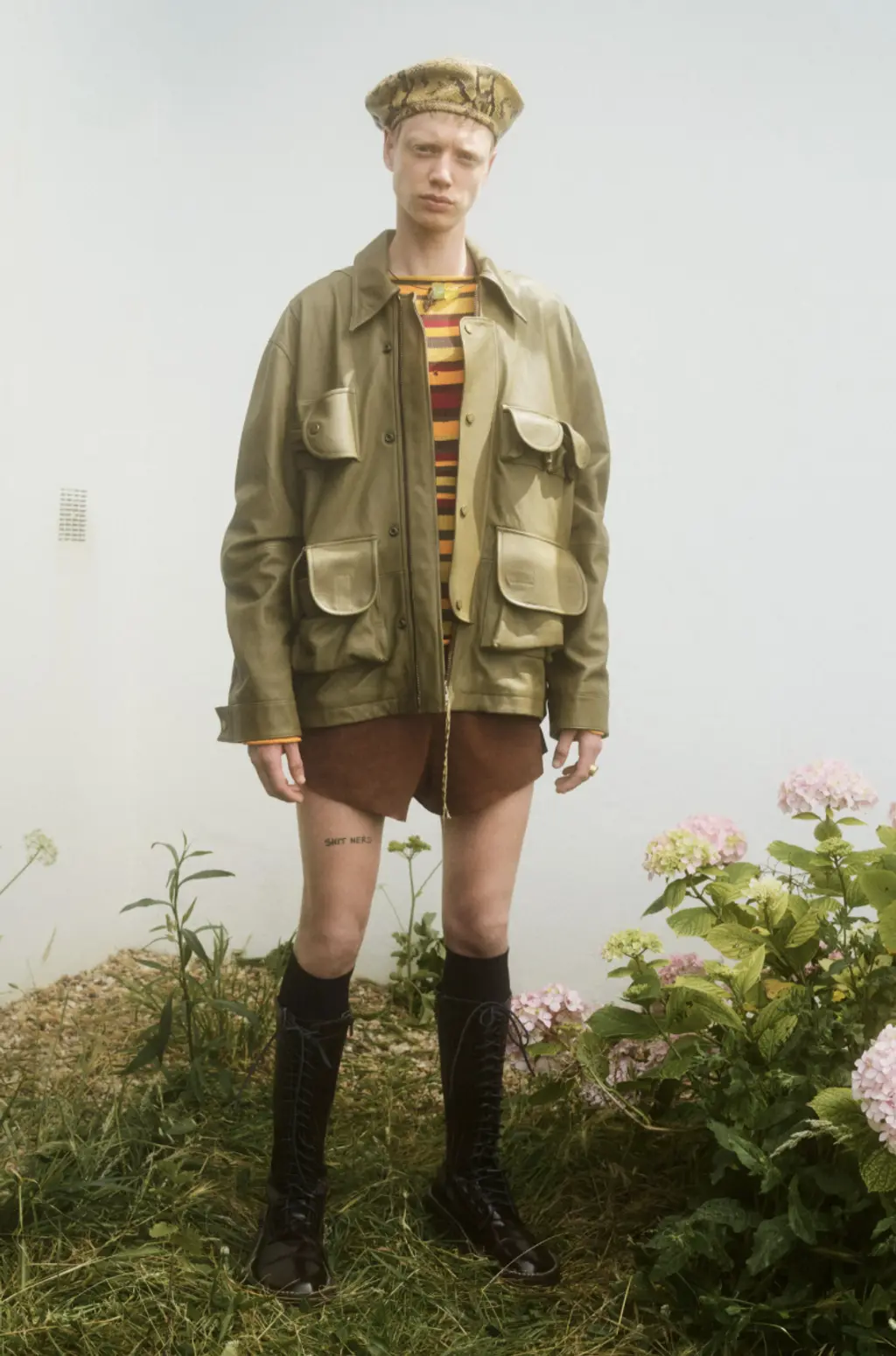 And like something out of the Balearic hippie trail, Acne Studios’ SS22 menswear collection took earthy, oversized elements and placed them on long yarns of fabric that were as relaxed as a yogi on shroom oil. Further down the collection, models left the hippie retreat and were sent camping, wearing utility jackets with huge, heavy pockets, khaki trousers tucked into military boots and wrap-around sunglasses.