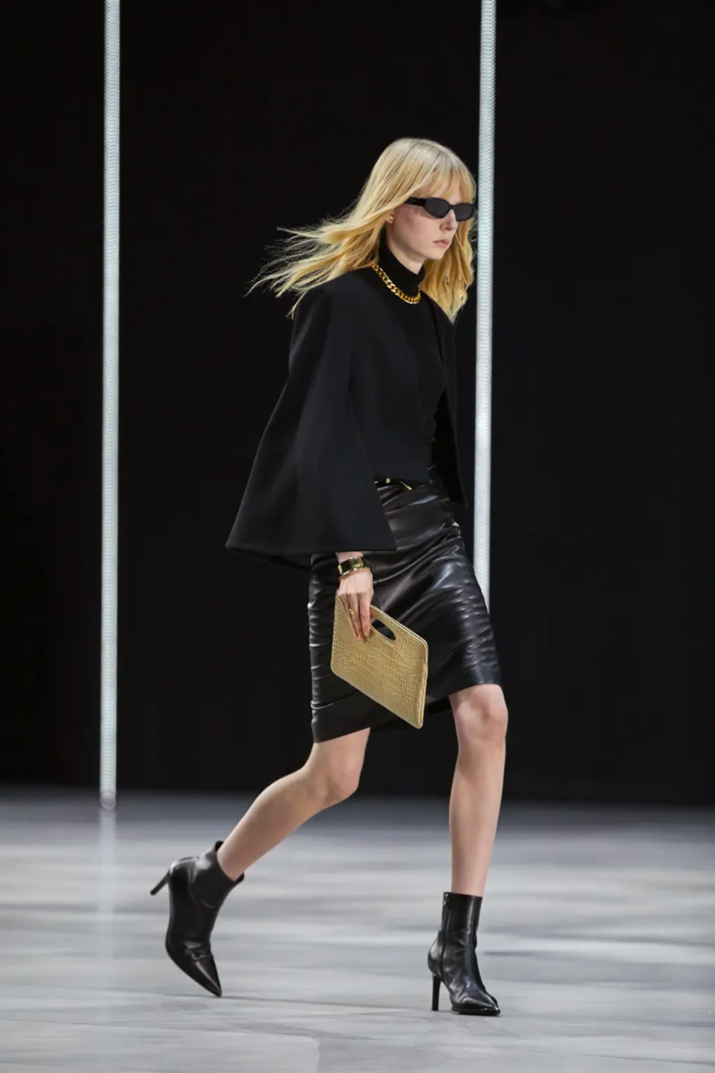 It was hard not to feel a little enamoured by the Celine woman as she stomped through Slimane’s latest opulent show setting, the Salons D’apparat of the Hôtel de la Marine, a historic 18th century building on Place de la Concorde in Paris. In the 18th and 20th centuries, the Salons D’apparat hosted fashion shows for the royal collections. And Celine’s AW22 collection, presented via film earlier today, happened to be the first fashion show to be held in the grand space since its three-year restoration taking place ended in 2020.