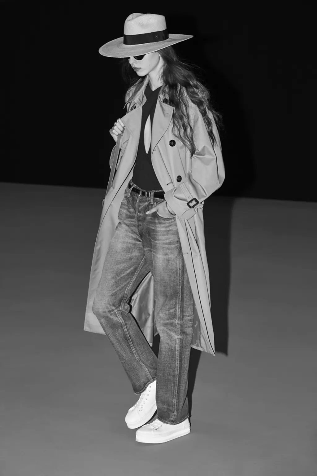 Straw hats make an appearance, too, as do oversized pinstripe shirts and low-slung camo trousers worn with kitten heels. The Celine woman epitomises relaxed, French cool and this SS22 collection continues that tradition, ramping up evening wear while keeping wardrobe staples pared back.
