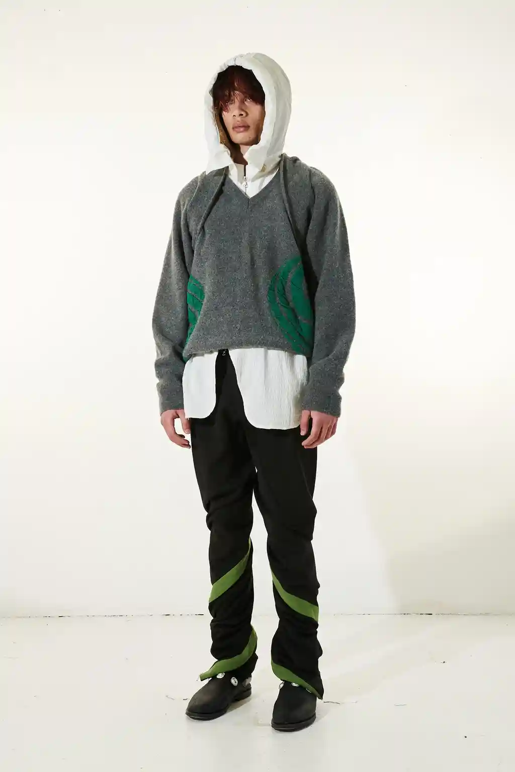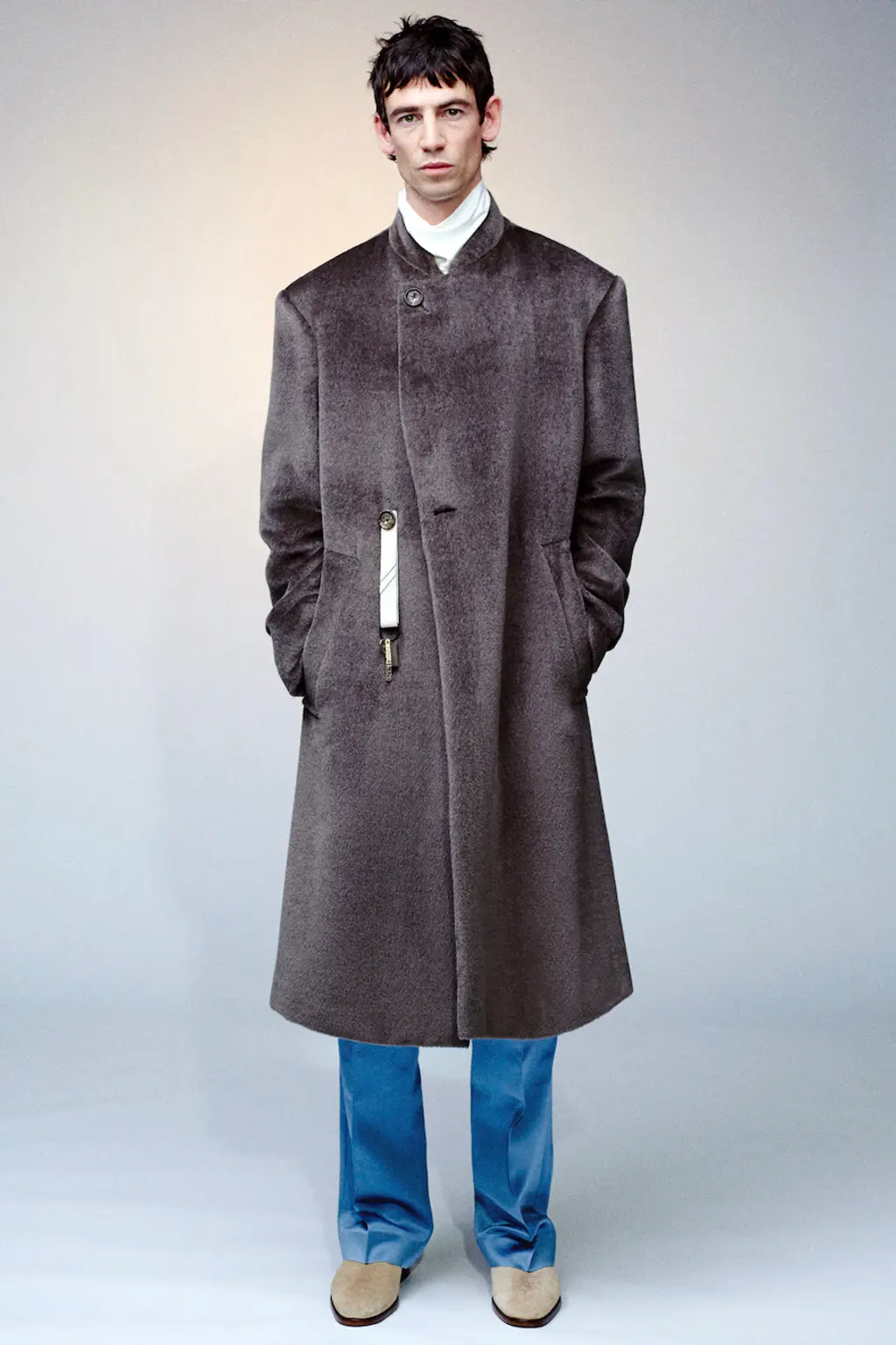 Daniela Meichelböck, womenswear designer and recipient of the DAAD Scholarship, studied people waiting for a collection rife with subtle, personal details encapsulating the most mundane of activities. In a year of waiting – for new government guidelines, for freedom, for the end of lockdown – Meichelböck’s use of wool, cotton shirts, hunched overcoats and blazers is a comforting antidote to a collective feeling of loss – a hug of sorts.