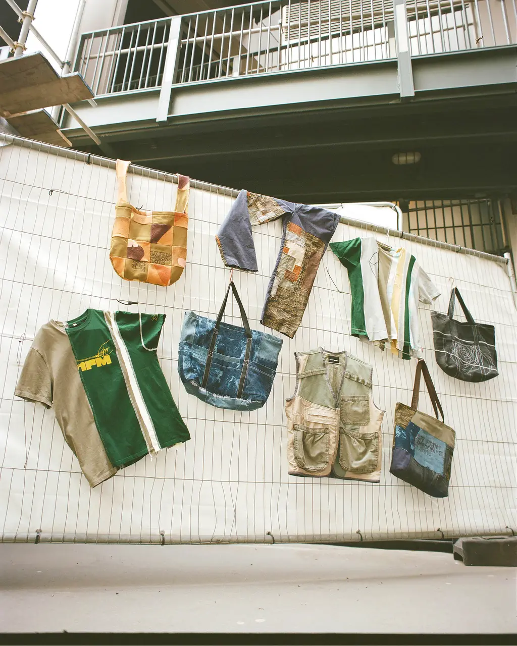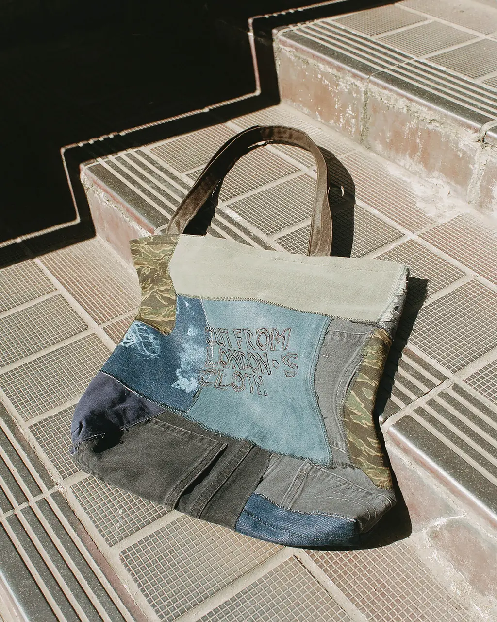 Over the past couple of weeks, W+K London and Zoe Matilda, who runs Zoe Matilda Management, have been sourcing donations from Kate Moss, Damson Idris, Joy Crookes, Clara Amfo and Little Simz. Then, with a bit of tweaking by Greater Goods’ designer Jaimus Tailor, the garments were reimagined into all sorts of patchwork pieces. Think: jeans with camo prints, denim bags and utility vests.