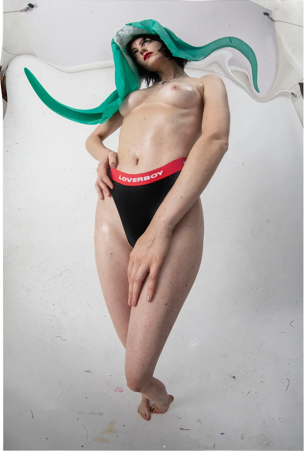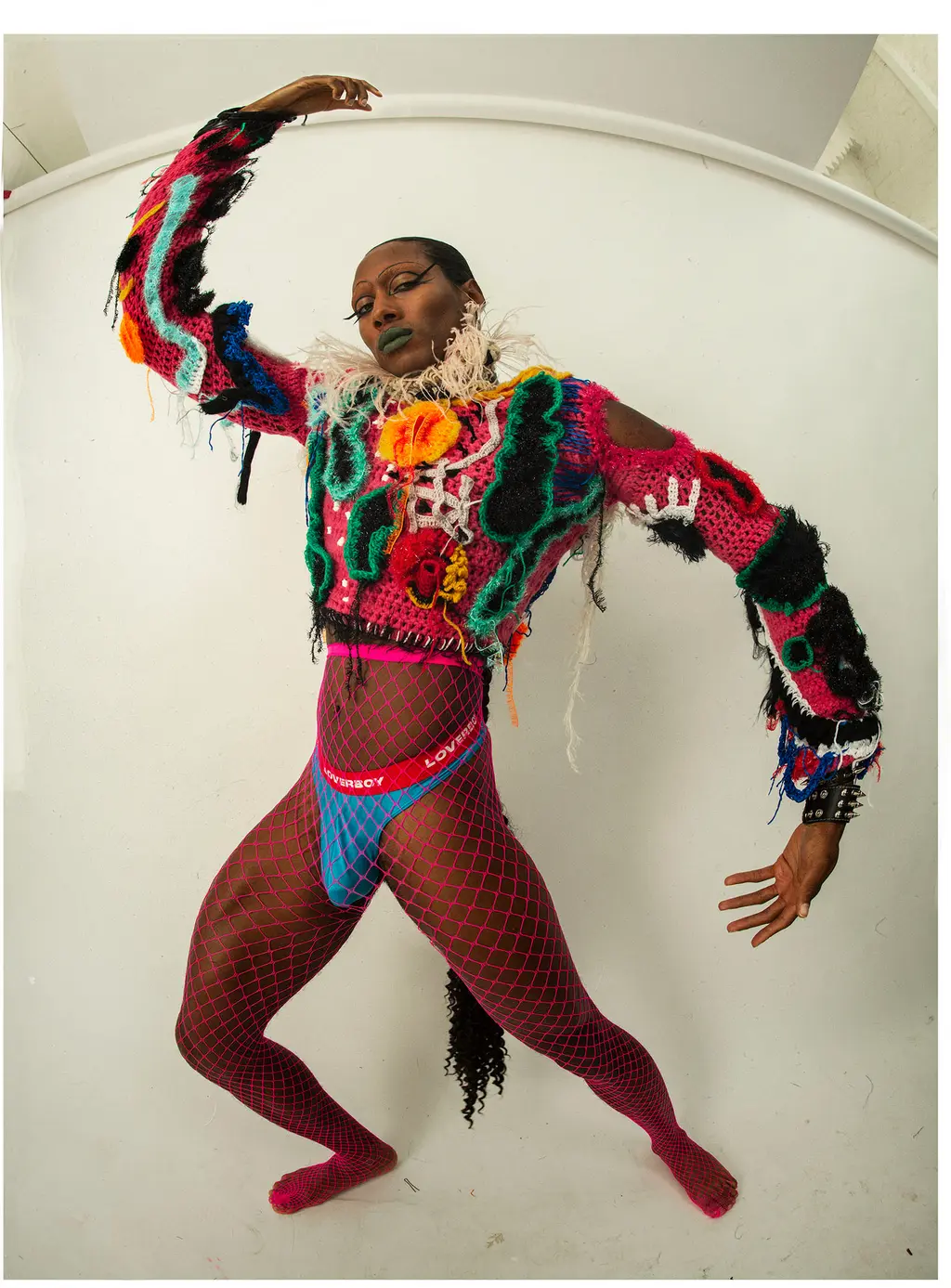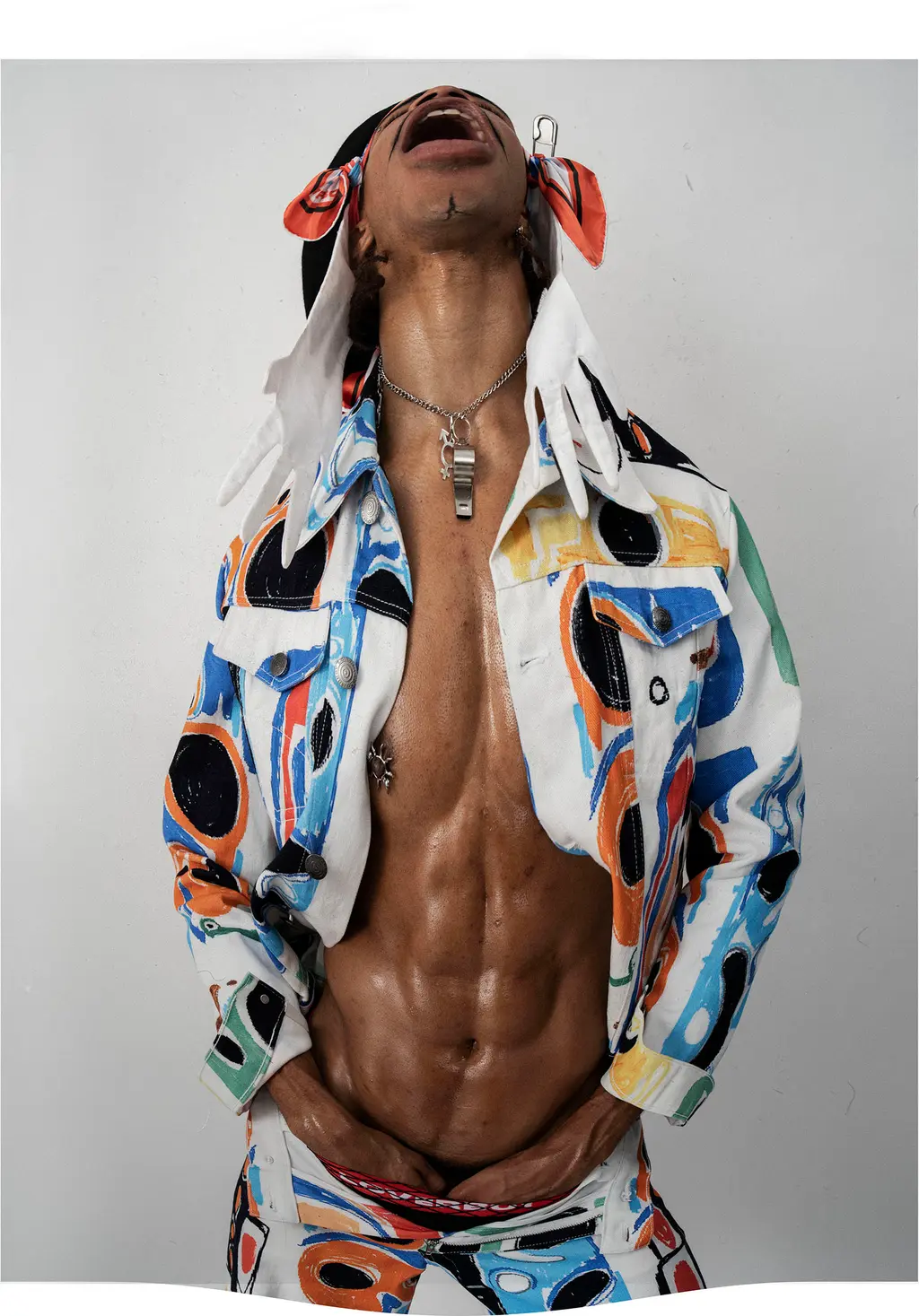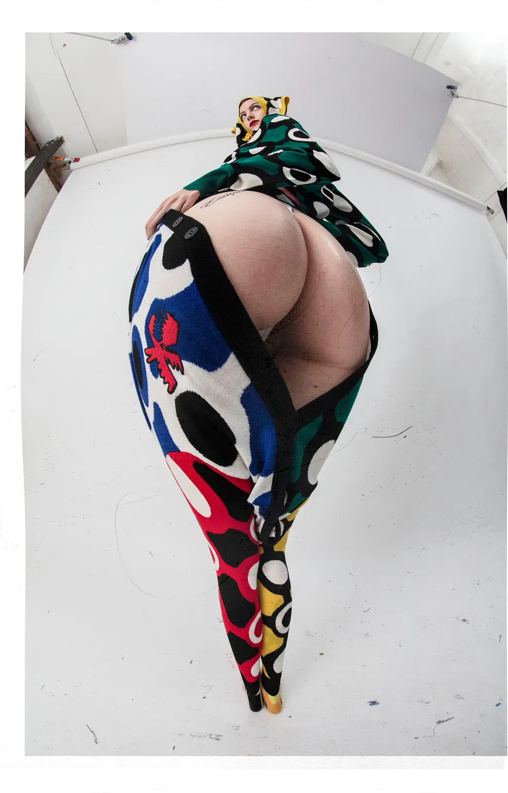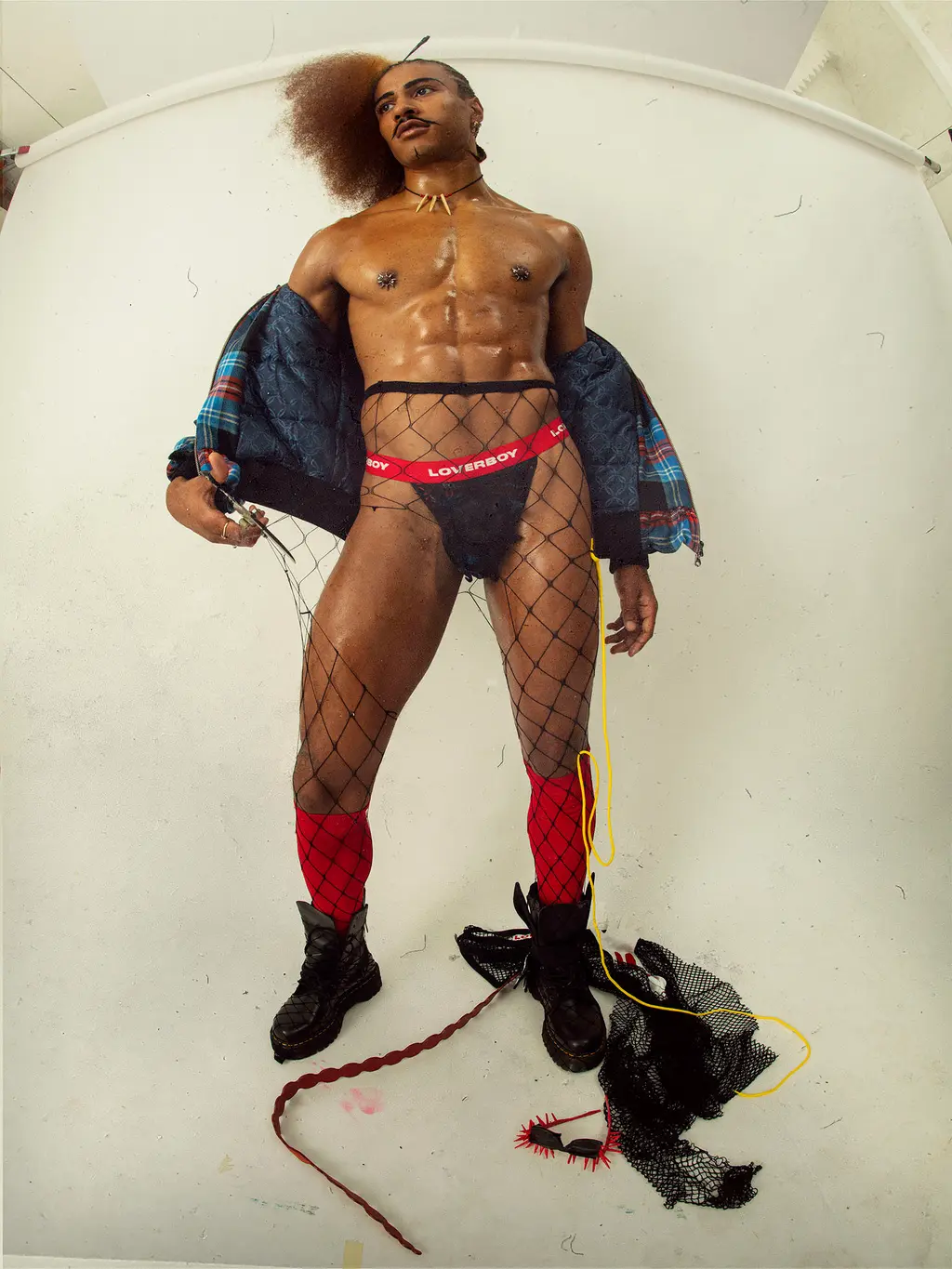 His latest LOVERBOY collection is a journey through heightened states: anxiety, fear, terror, but also elation, as told through Walker’s surreal style and characterful models bursting through the lens. It seems this time Jeffrey is more concerned than ever with his wearers feeling comfortable – part of the healing process, perhaps? – with roomy sailor jackets, stretchy, ultra-luxe leggings and draping. Jeffrey even introduces a bit of sex to the LOVERBOY label via g‑stringed jockstraps, for xxxtra pleasure.