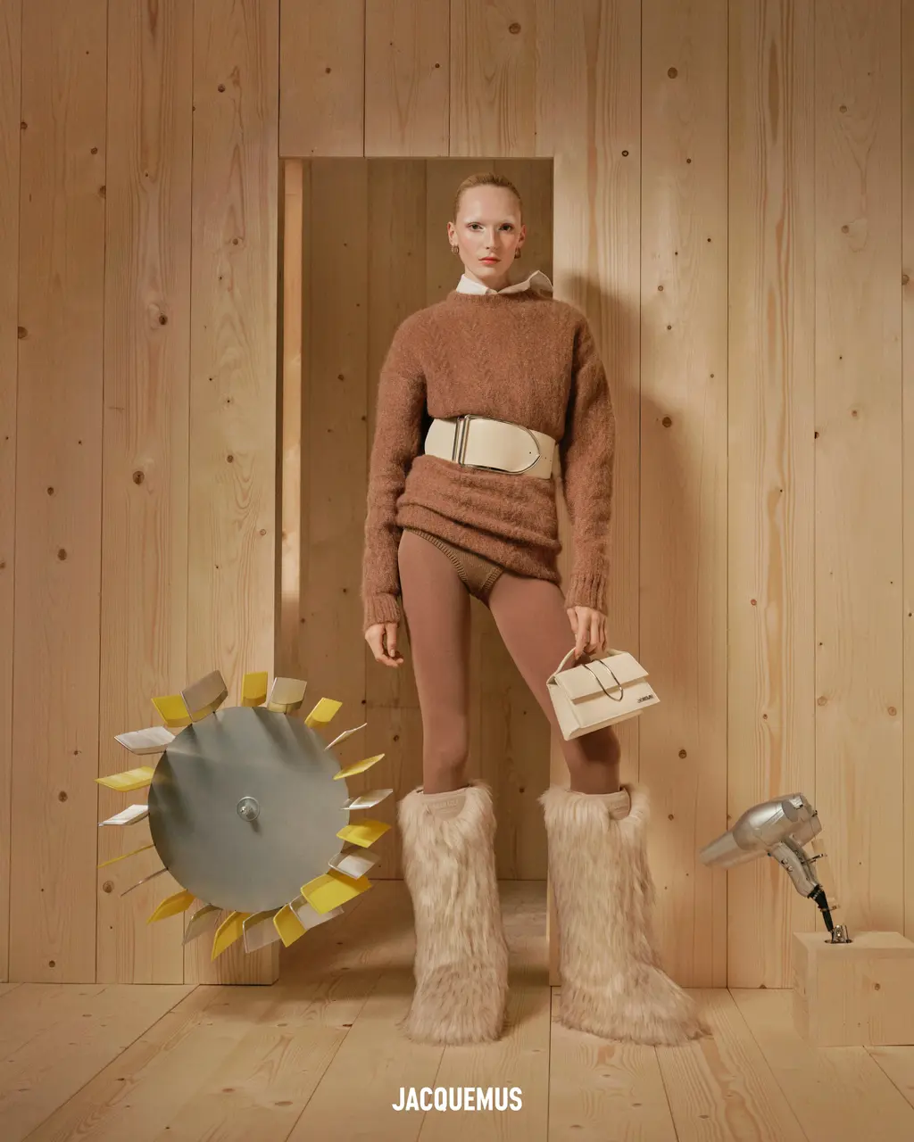 An Alex Consani/Jacquemus collaboration was not on our 2024 bingo card but NGL, they make a cracking team. The former FACE cover star fronts a limited-edition collection saturated with beige, biscuity tones and laced with garments that oscillate between chic après-ski pieces and hero knits for huddling in front of the fireplace. Sat astride a rowing machine, wind machine on full blast, she looks every bit the supermodel. Consani in a knitted hood with beads of water on her face is a proper stop-you-in-your-tracks moment, too.
