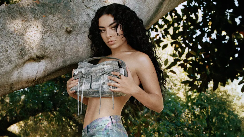The campaign, shot by Talia Chetrit, features a topless Charli in paint-splattered jeans, eyeing herself in the mirror. What was it she said in 360? “When you’re in the mirror, you’re just looking at me.” A woman of her word.