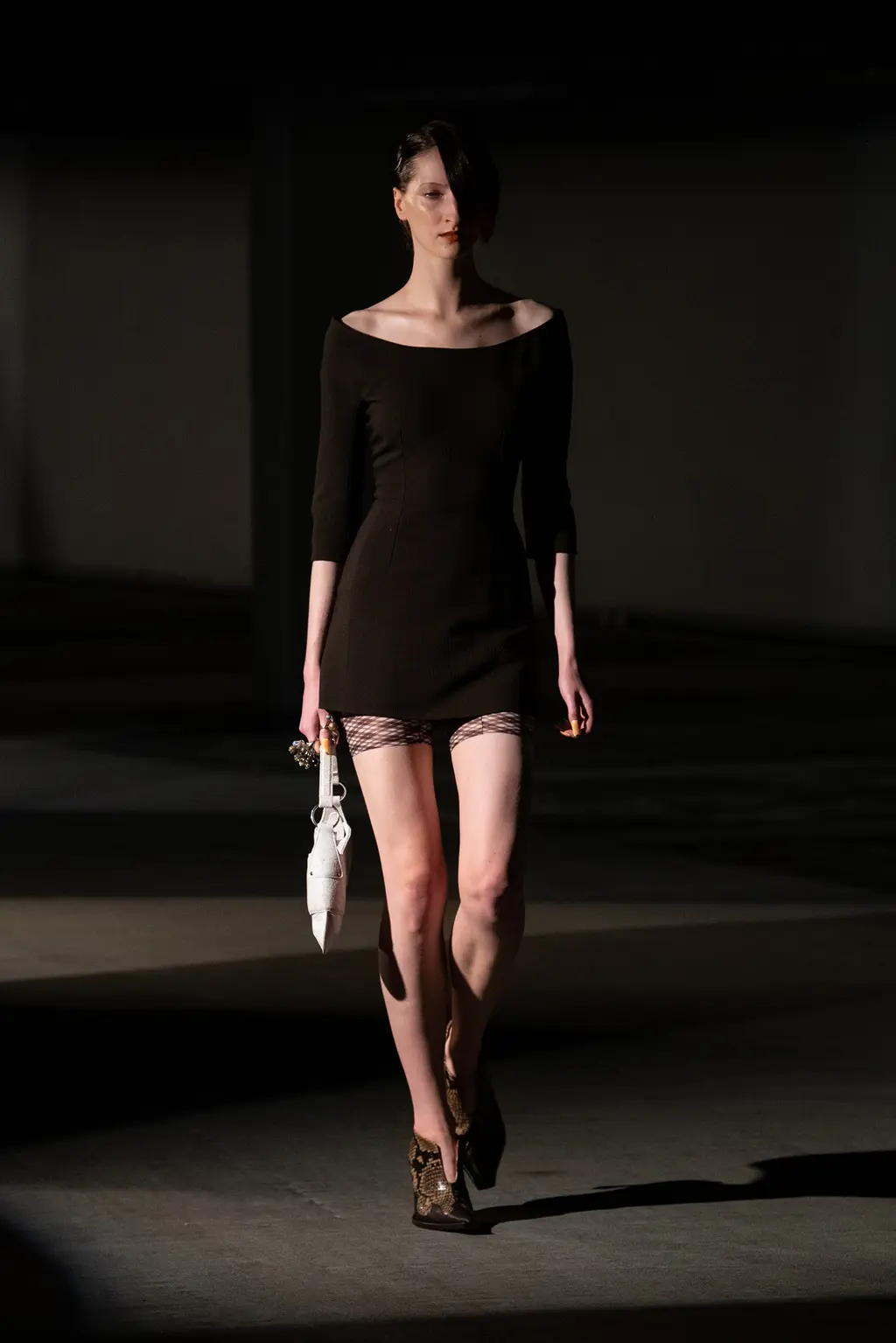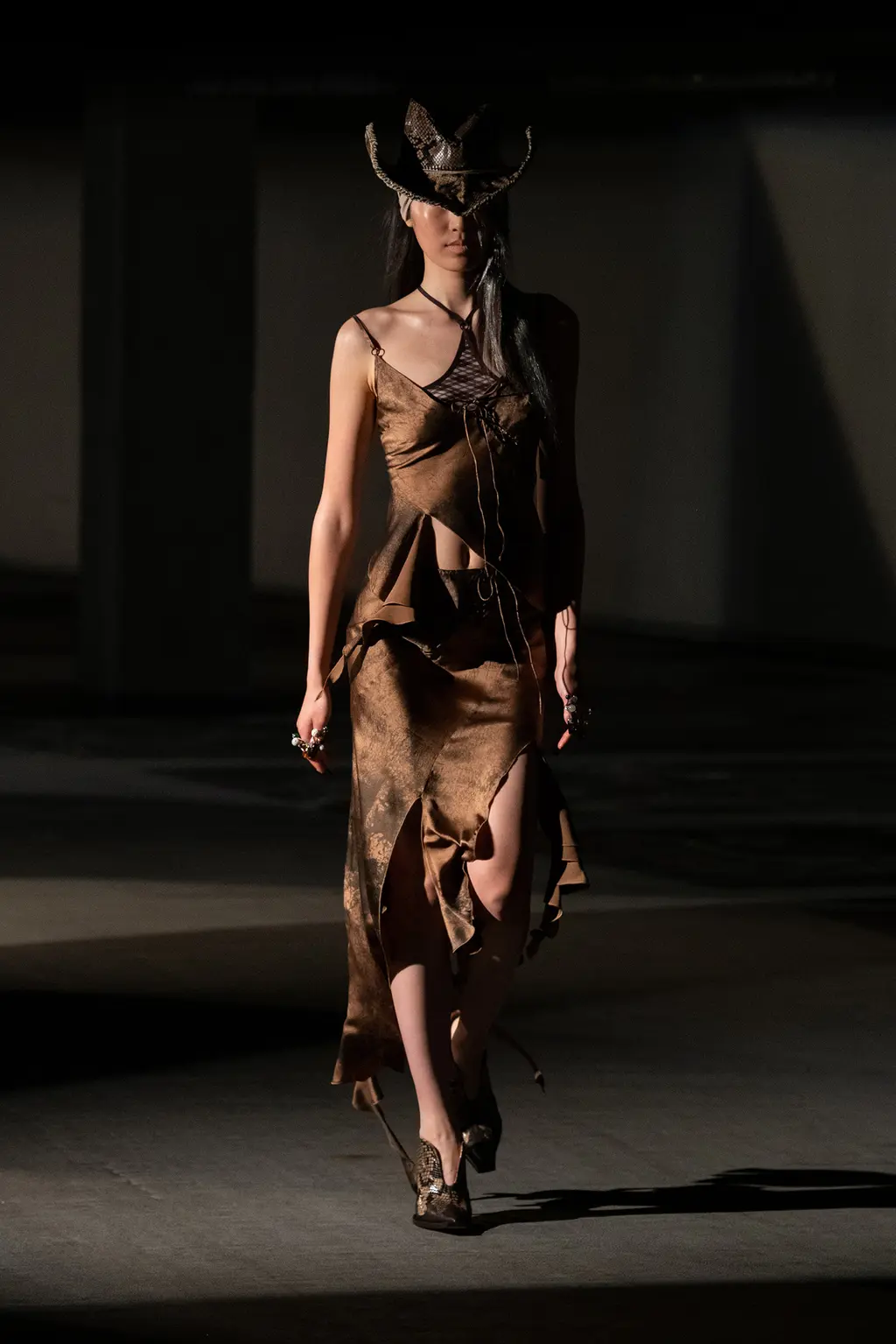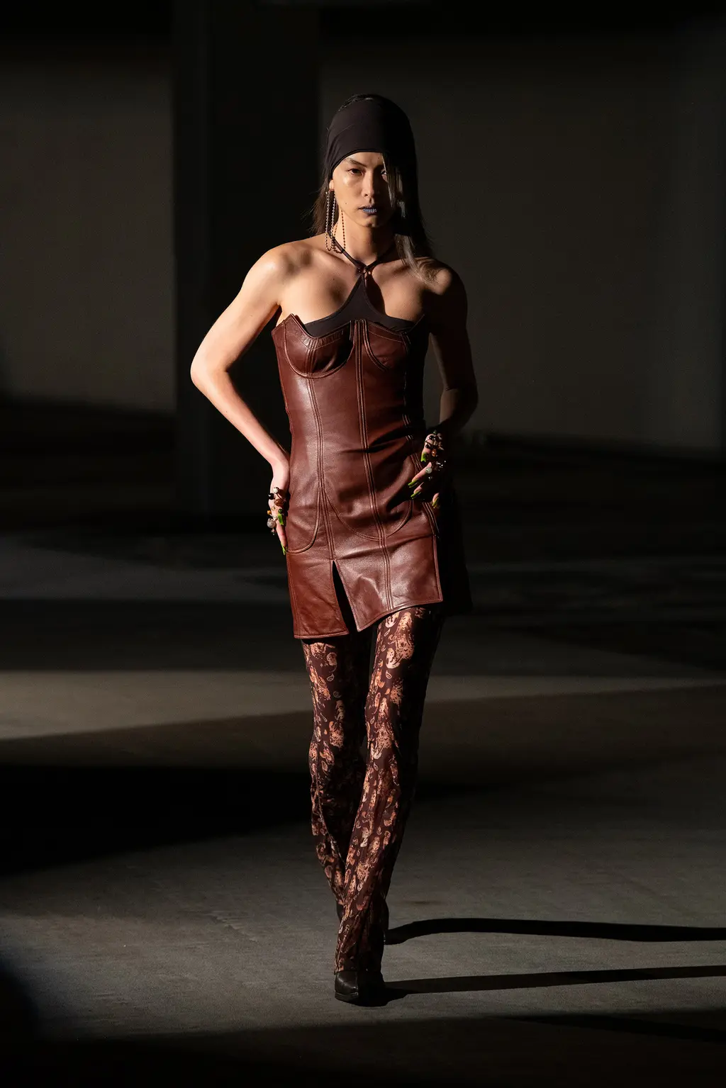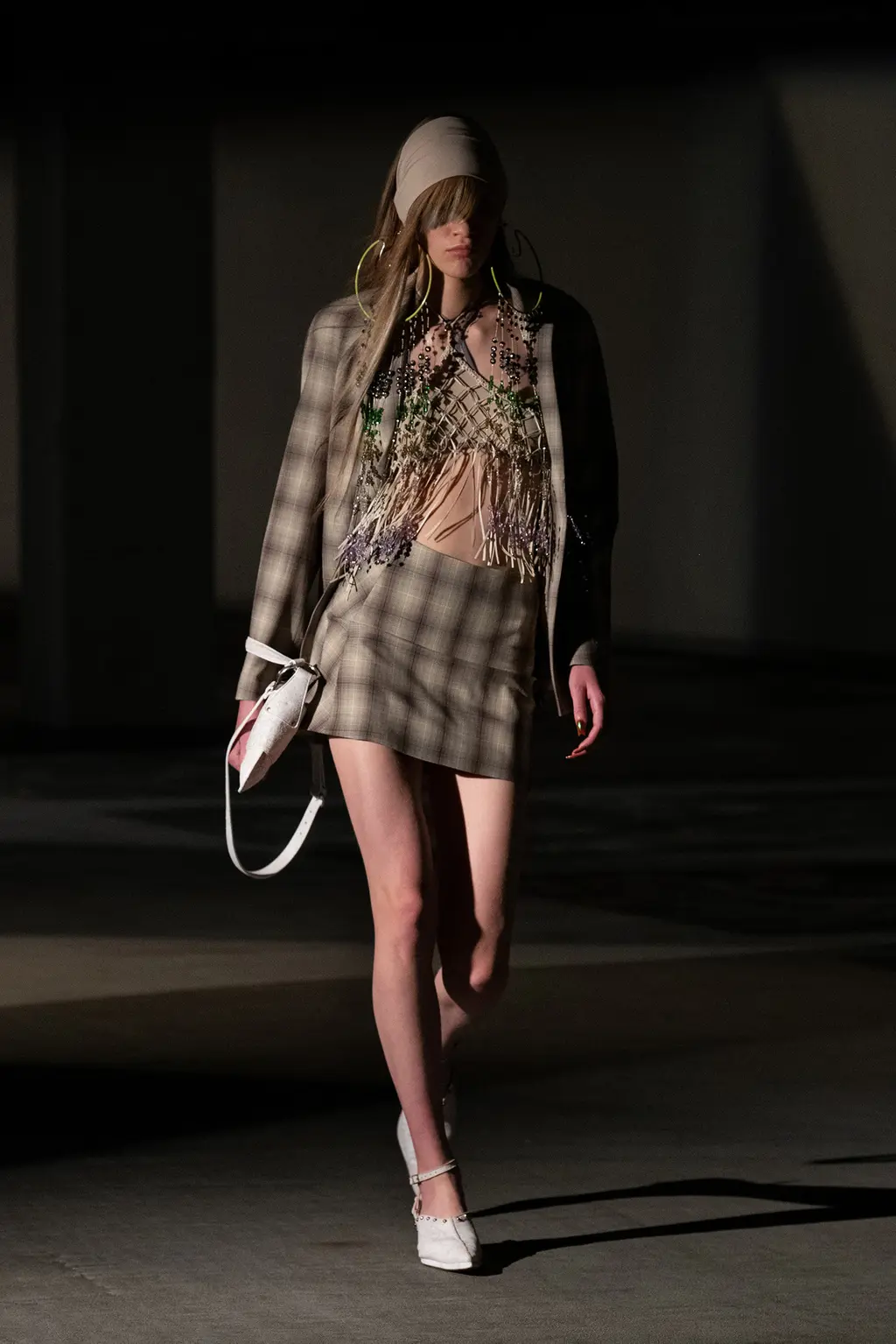 Since launching their label in 2017, Charlotte Knowles and partner Alexandre Arsenault have been exploring their unique, raw and rugged brand of sexy by creating clothes and shaping trends that women instinctively want to wear – and SS22 was no exception. Illuminated sporadically by triangles of bright white light, KNWLS’ models stomped through the subterranean show space soundtracked by ground-shattering industrial techno, dressed as though ready to reign the city’s underworld with intrepid gusto.