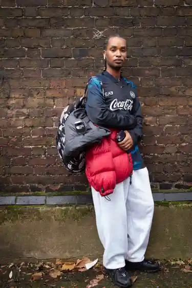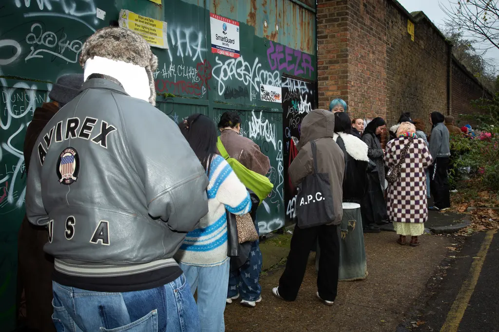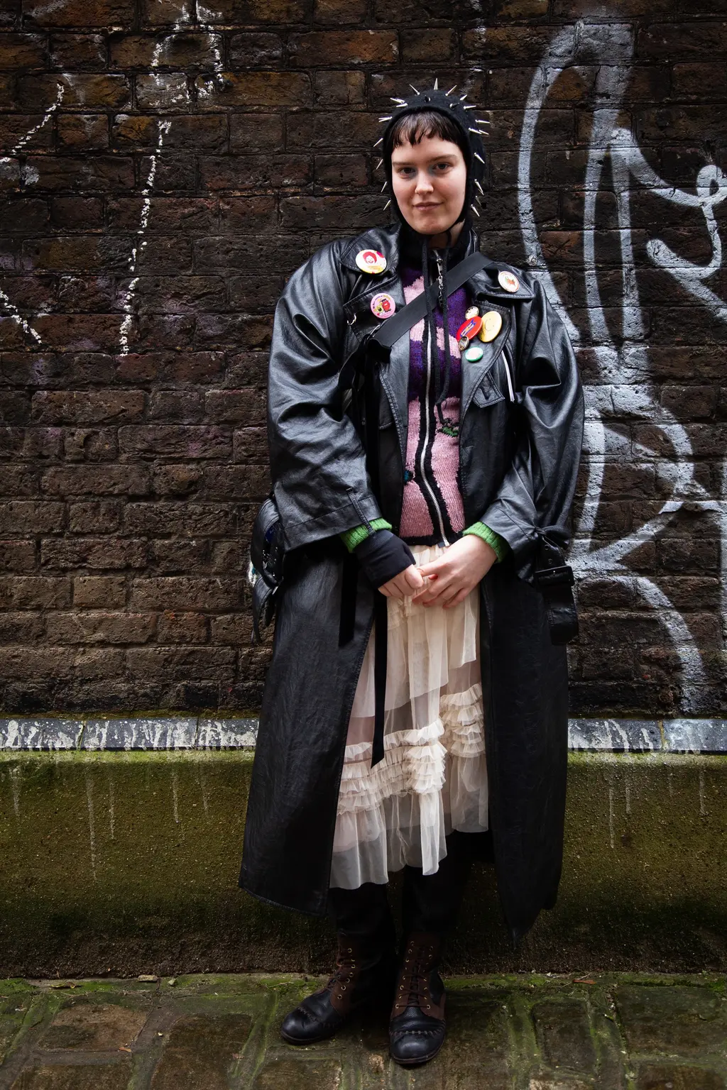 It’s easy to sniff out a Chopova Lowena fan. Walking out of Deptford station at 9am last Saturday, a young woman wearing a glossy oxblood puffer, Cecilie Bahnsen x Asics trainers and a bum bag rushes past. Another, likely in her twenties, appears moments later, speed walking down the street. She’s clad in a plush coat and a knitted side bag that you might’ve spotted on TikTok. On the opposite side of the road, I spot another woman with spiked knitted earmuffs and a floral patchwork knitted top which catches my attention.