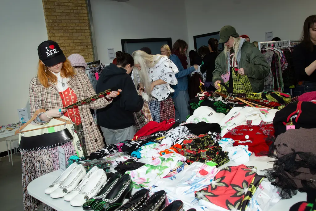 After securing my own skirt (it has a sizeable red belt and embellished adornments), I spot Emma and Laura serving at the till, as Charli xcx’s Brat remix album soundtracks dozens of customers pulling mini carabiner skirts over their trousers. They chat with each punter and carefully wrap up each item as though they’re handing over their firstborn, which, to some extent, isn’t far off. “Laura was packing up a skirt and said, ‘Goodbye baby, have a good life!” Emma says, laughing.