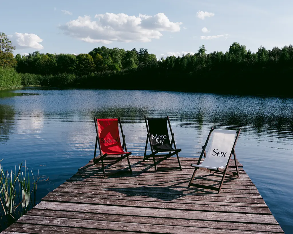 From Sex print deckchairs and fans, to anti-virus masks and wipe clean card holders, Christopher Kane’s new More Joy drop is bringing the heat while ensuring safety first in a time of pandemic.