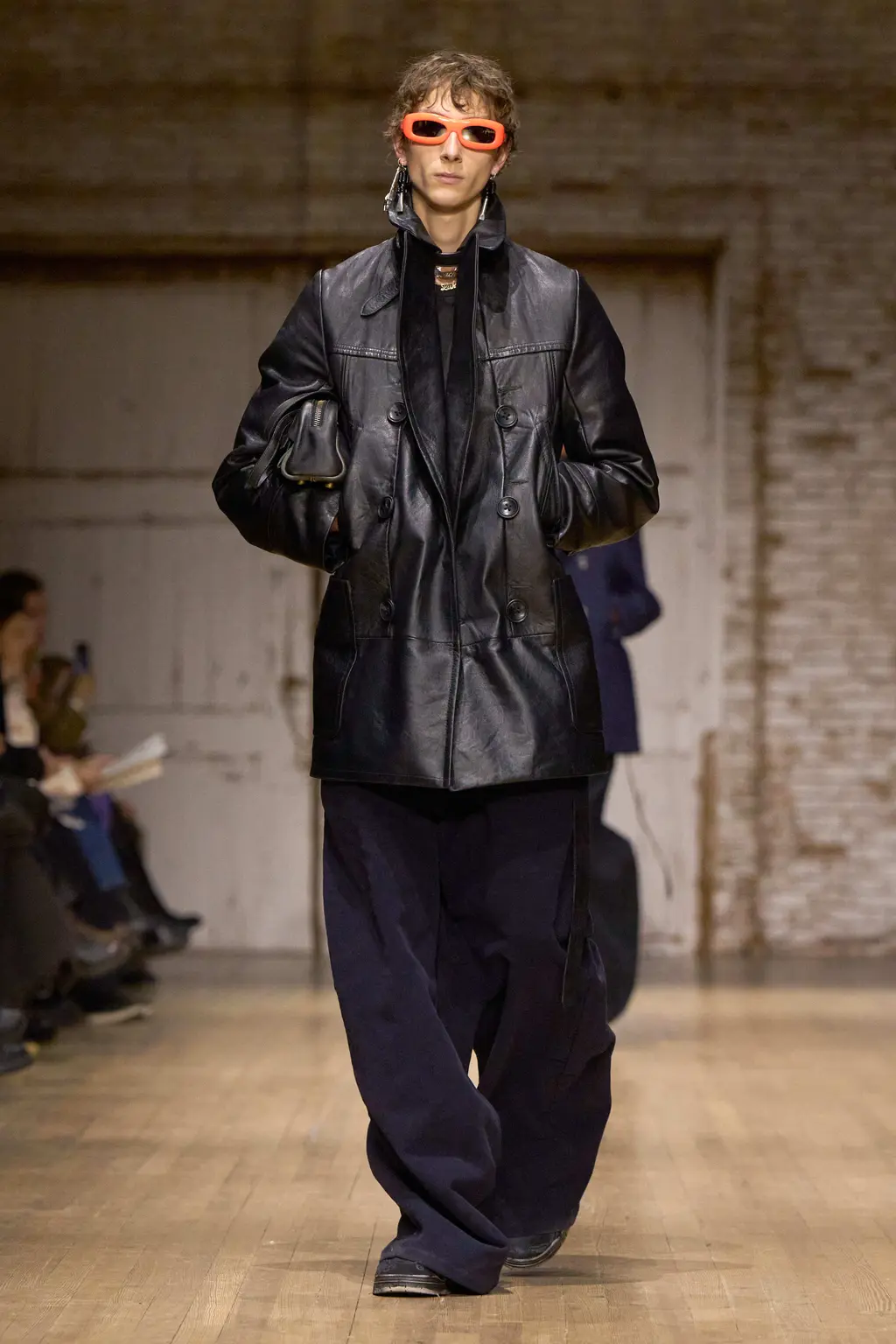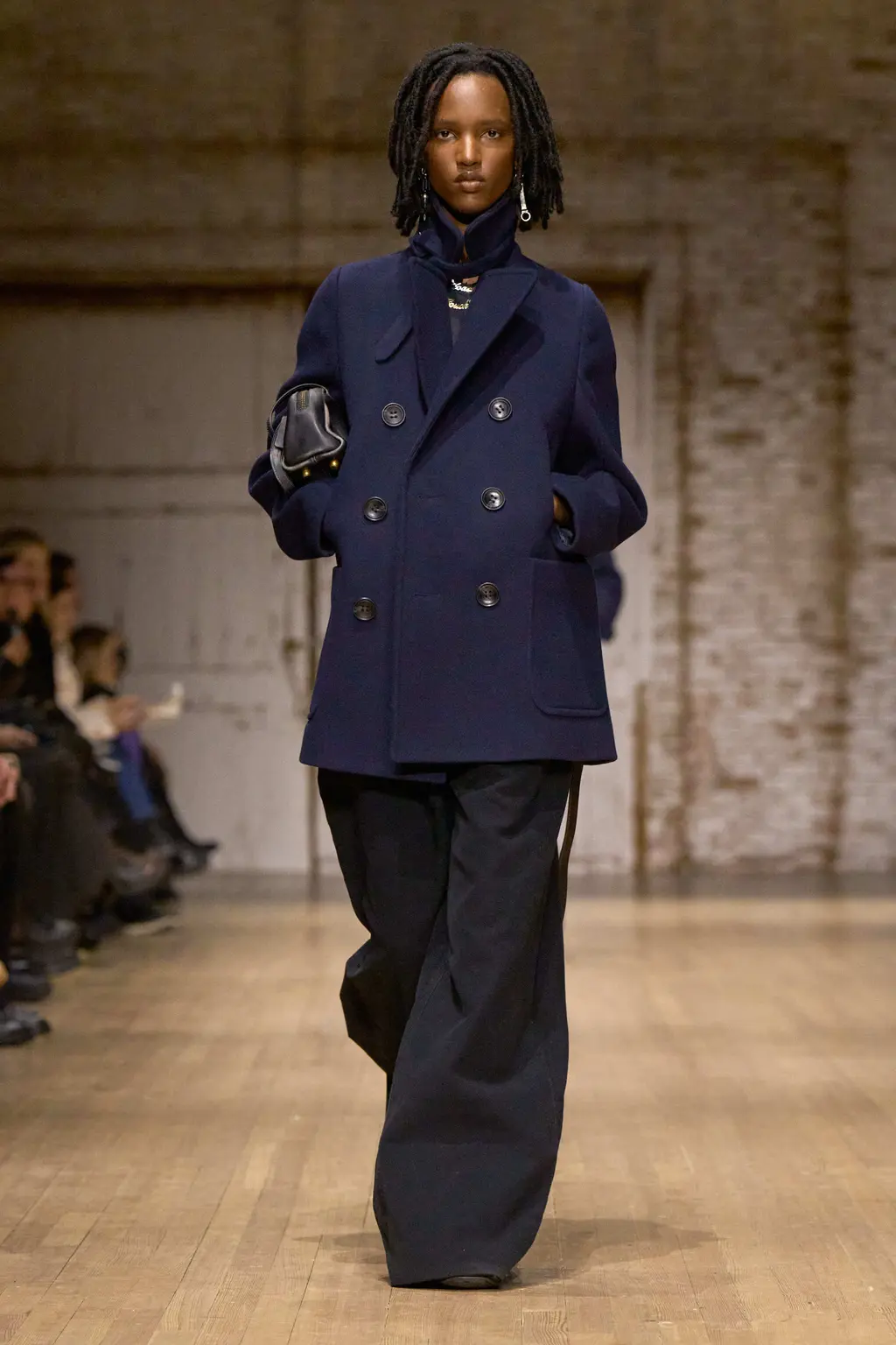 Staged inside the spacious Wade Thompson Drill Hall on Park Avenue, Gen Z princess PinkPantheress and City Girls rapper JT (dream blunt rotation) sat in the front row, as indie band and Brooklynites Nation of Language performed ahead of the show. A model came down the runway in square neon yellow sunglasses, a floor-sweeping, high-neck coat and a small rounded bag tucked into her side, marking the start of the fun. Gone were last season’s proclamations for New York and in their place, something more experimental, though no less sincere. Exciting stuff.