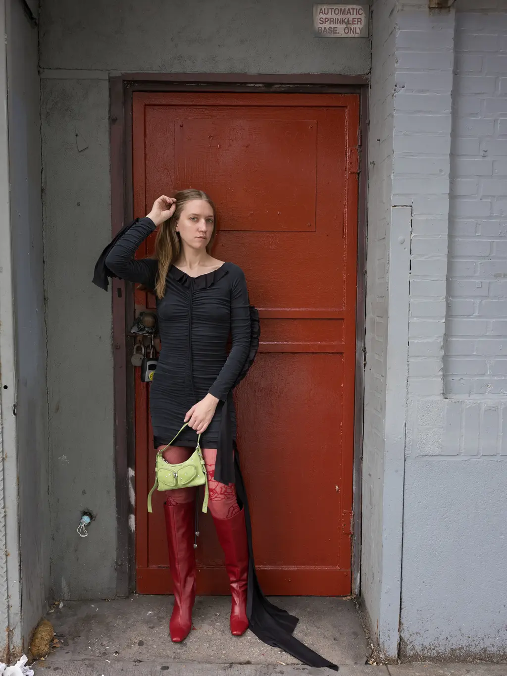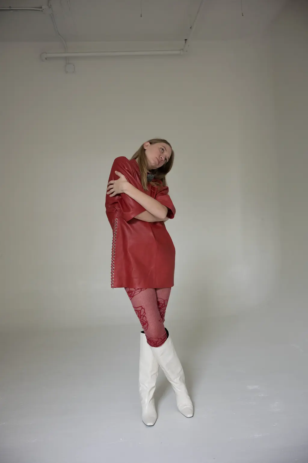 Coco wears dress, leggings, shoes and bag BIMBA Y LOLA