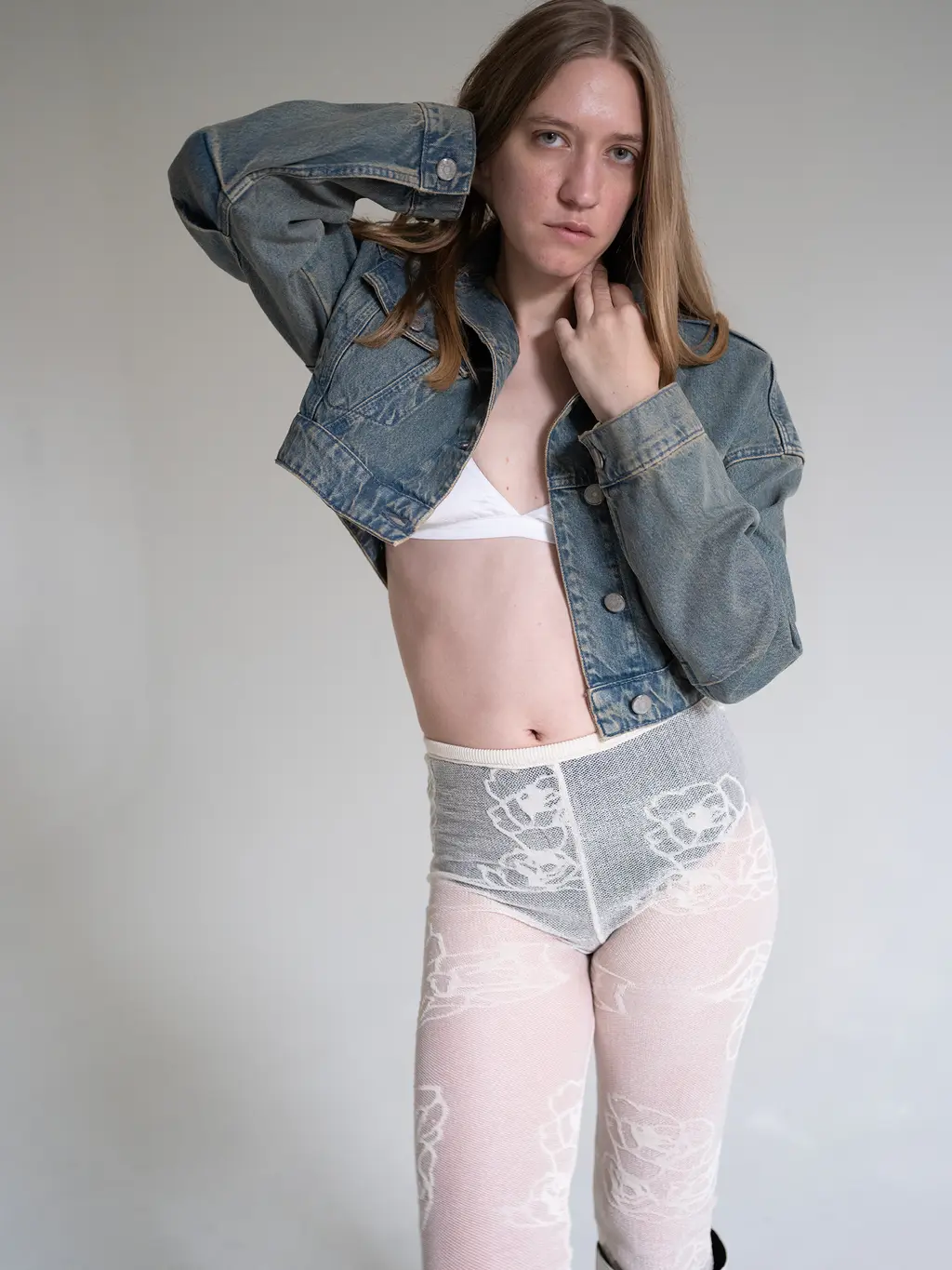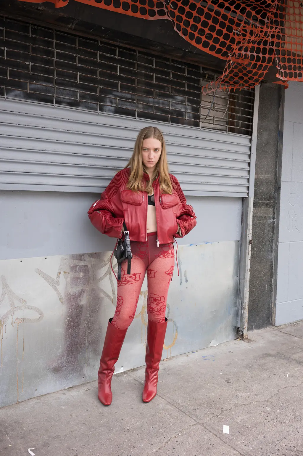 Coco wears jacket, leggings, shorts and bag BIMBA Y LOLA