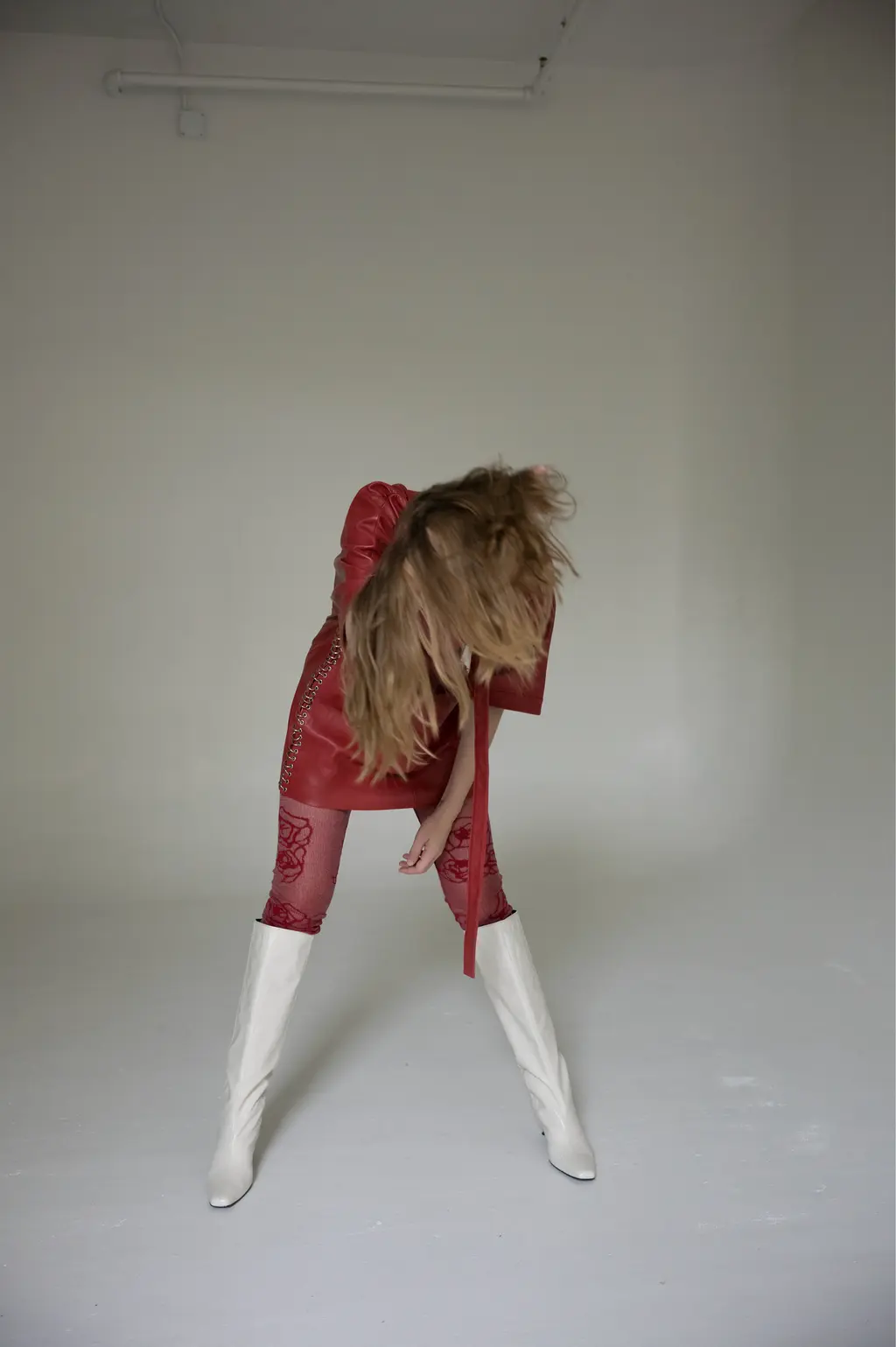 Coco wears jacket, skirt, shoes and bag BIMBA Y LOLA