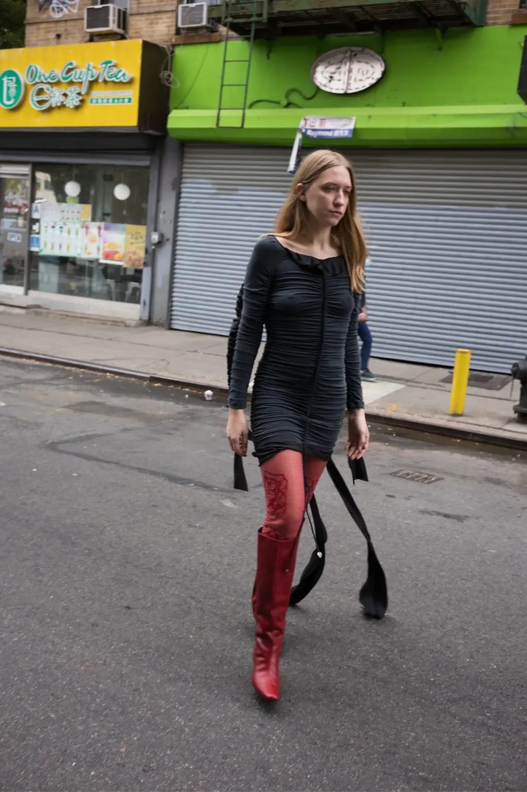 Coco wears dress, jeans, shoes and bag BIMBA Y LOLA