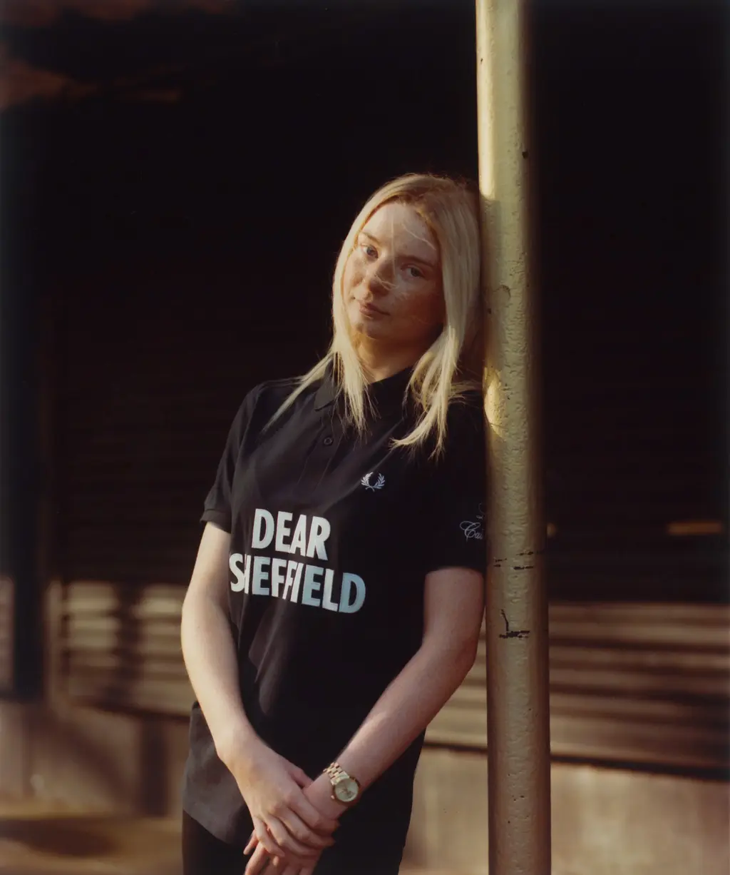 In the north, everyone thinks its best days are behind it. But even with Sheffield, which is a postwar city where so much of the architecture is not supposed to have a lot of feeling behind it, there’s lots of attachment. I always wanted to visit the landmarks my mum and dad would talk about because a lot of them were knocked down, demolished or abandoned. The line about the hole in the road on the back of the “DEAR SHEFFIELD” shirt is a reference to this famous roundabout in the middle of Sheffield where everyone used to meet. It had a fish tank in the middle! The clubbing culture in Sheffield is huge, too. It’s the epicentre of dance.