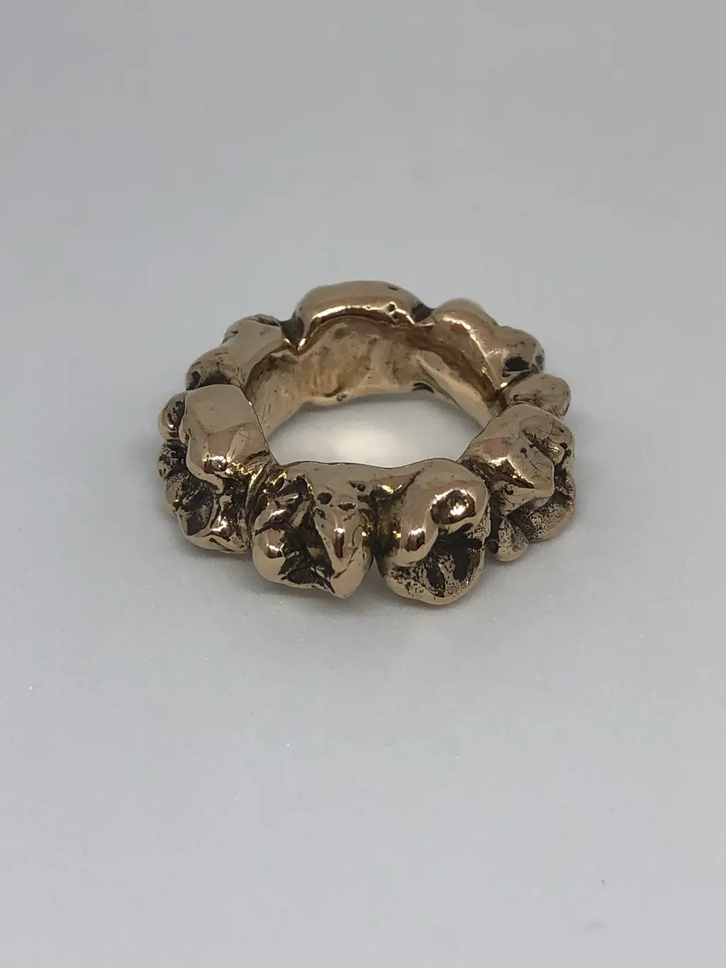 Probably my chunky tooth ring. I make it in bronze, silver and gold. It’s a timeless piece – I design lots of teeth jewellery and keep developing my range by making small alterations. Recently I’ve started adding gemstone fillings into the teeth in a variety of colours.