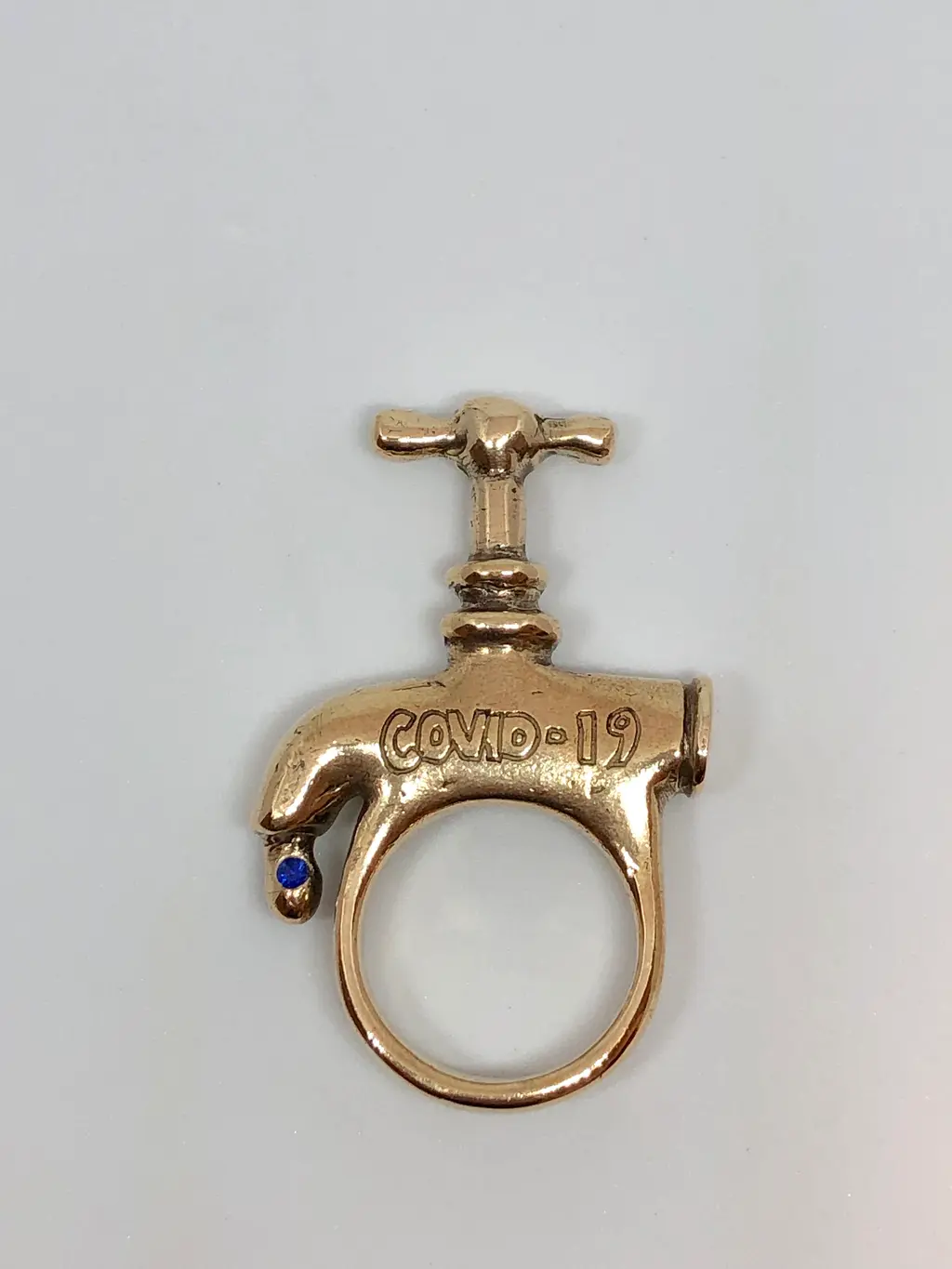 Immie Spilsbury’s wash-your-hands tap signet rings are a sign of the times.