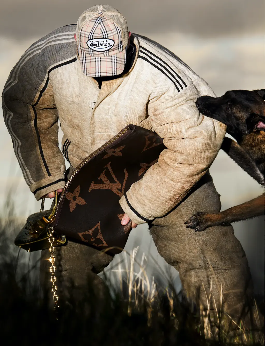 Stephane wears top and trousers (worn throughout) talent’s own, bags LOUIS VUITTON AT VESTIAIRE COLLECTIVE and FENDI, sunglasses BOTTEGA VENETA and hat VON DUTCH