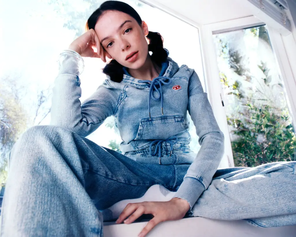 Now, she’s flying the Diesel flag once more in a special fashion story for THE FACE, shot in her own, playfully decorated apartment. Here, Snyder is sporting looks from Martens’ innovative capsule collection, Diesel Library, a fully sustainable range of made-to-stay essentials and icons, including the aforementioned jean-boots.